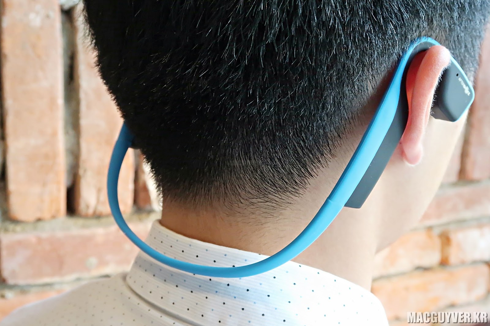 애프터샥은 귀에 들어가지 않을뿐 아니라 귀를 막지도 않기 때문에, 그리고 사운드가 고막을 거치지 않고 귀로 직접 전달되기 때문에 오픈형 이어폰과 비교했을 때도 귀에 가해지는 부담이 현저히 줄어듭니다.