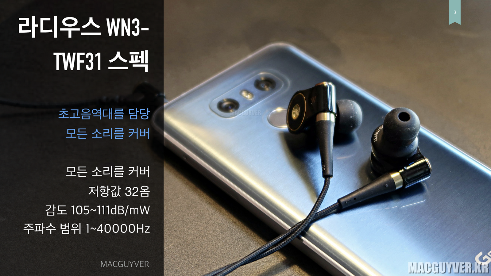 음악의 맛을 음미하게 도와주었던 라디우스 WN3-TWF31는 가족과 지인들에게 꼭 한번씩 들려주고 싶은 이어폰이 되었습니다. - MACGUYVER.