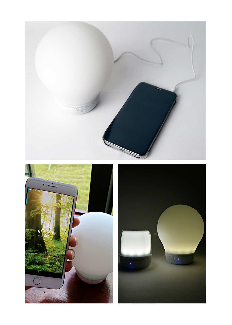 다른 LED 블루투스 스피커와는 다르게 불빛의 색감이 상당히 분위기가 있는데, LED 무드등으로만 사용해도 본전을 찾기에 충분할 정도로 귀여운 전구 디자인과 세련된 바디 디자인을 갖추고 있습니다.