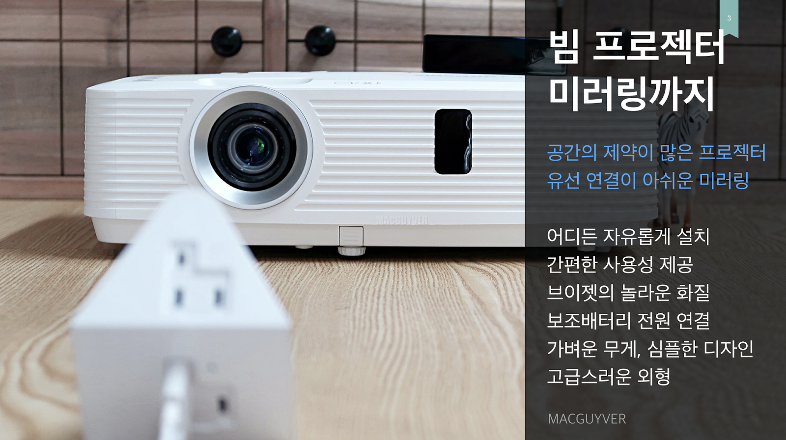 그래서 어디든 자유롭게 이동하면서 빔 프로젝터와 연동하는 것은 매우 힘든 일이었습니다.