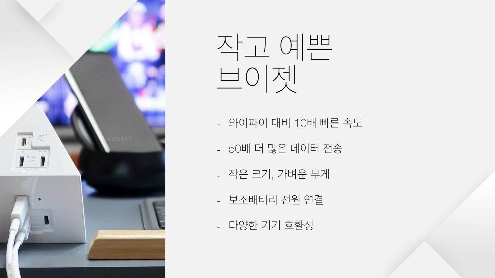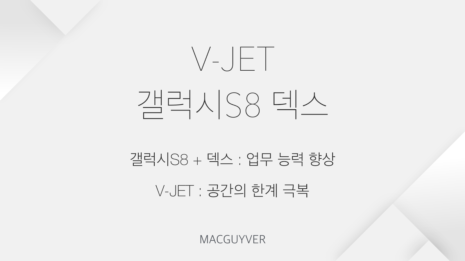 갤럭시S8을 가지고 있다면, 혹은 빔 프로젝터를 가지고 있거나 평소에 화면 미러링을 활용한 업무의 필요성을 느꼈던 분들이라면 0.1초의 딜레이도 허용하지 않으면서 최대 30미터까지 자유롭게 사용할 수 있는 V-Jet을 활용해보는 것도 좋을 것 같습니다. - MACGUYVER.