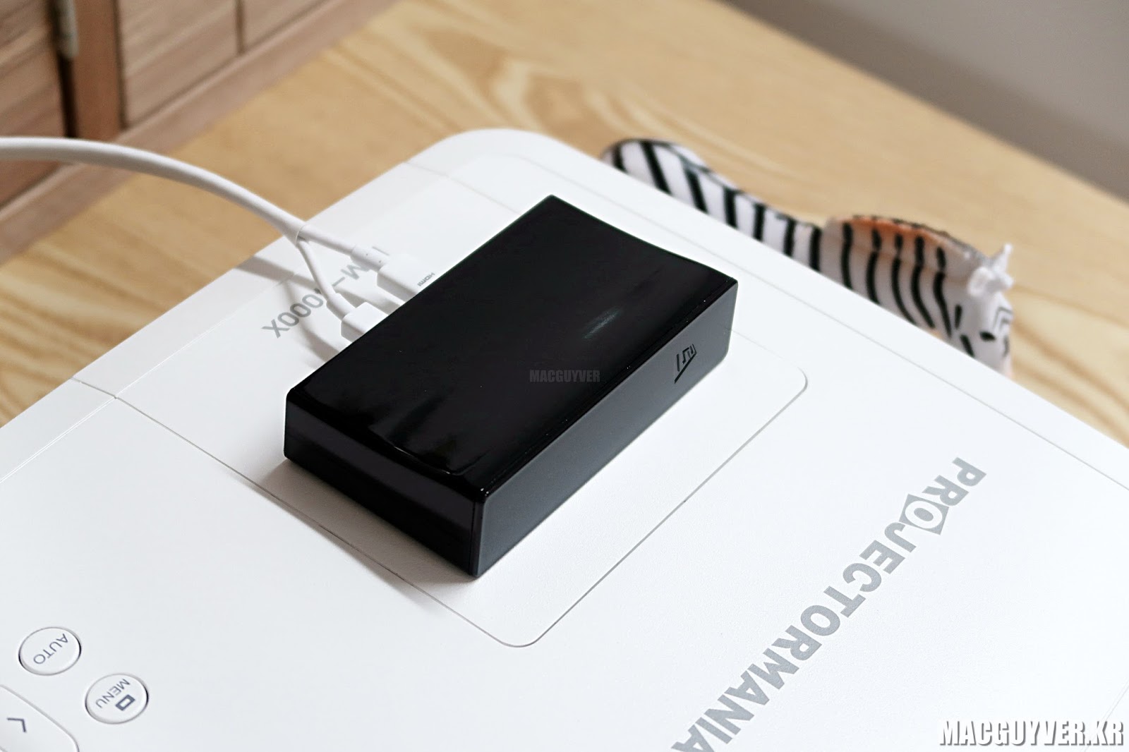 브이젯은 TV와 연동이 되는 수신기와 화면을 송출하는 기기와 연동되는 송신기로 구성되어 있고, 보조배터리만으로도 구동이 가능하기 때문에 어댑터를 찾아다닐 필요도 없습니다.