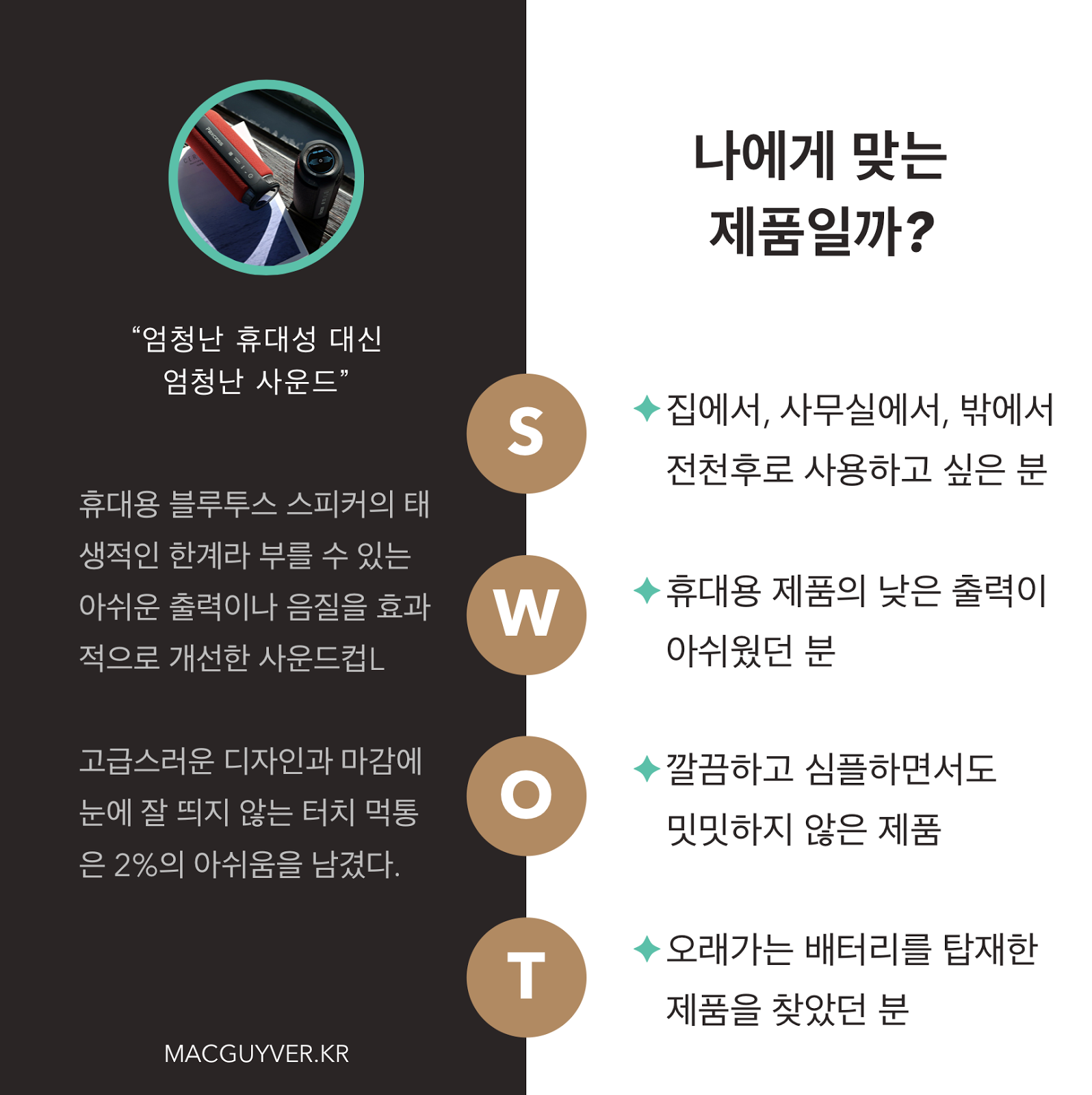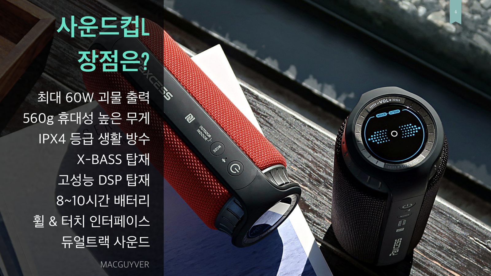 휴대성이 높으면서도 놀라운 사운드를 들려주는 제품을 찾았던 분들이라면 팍시스 사운드컵L을 선택하는 것도 좋을 것 같습니다. - MACGUYVER.