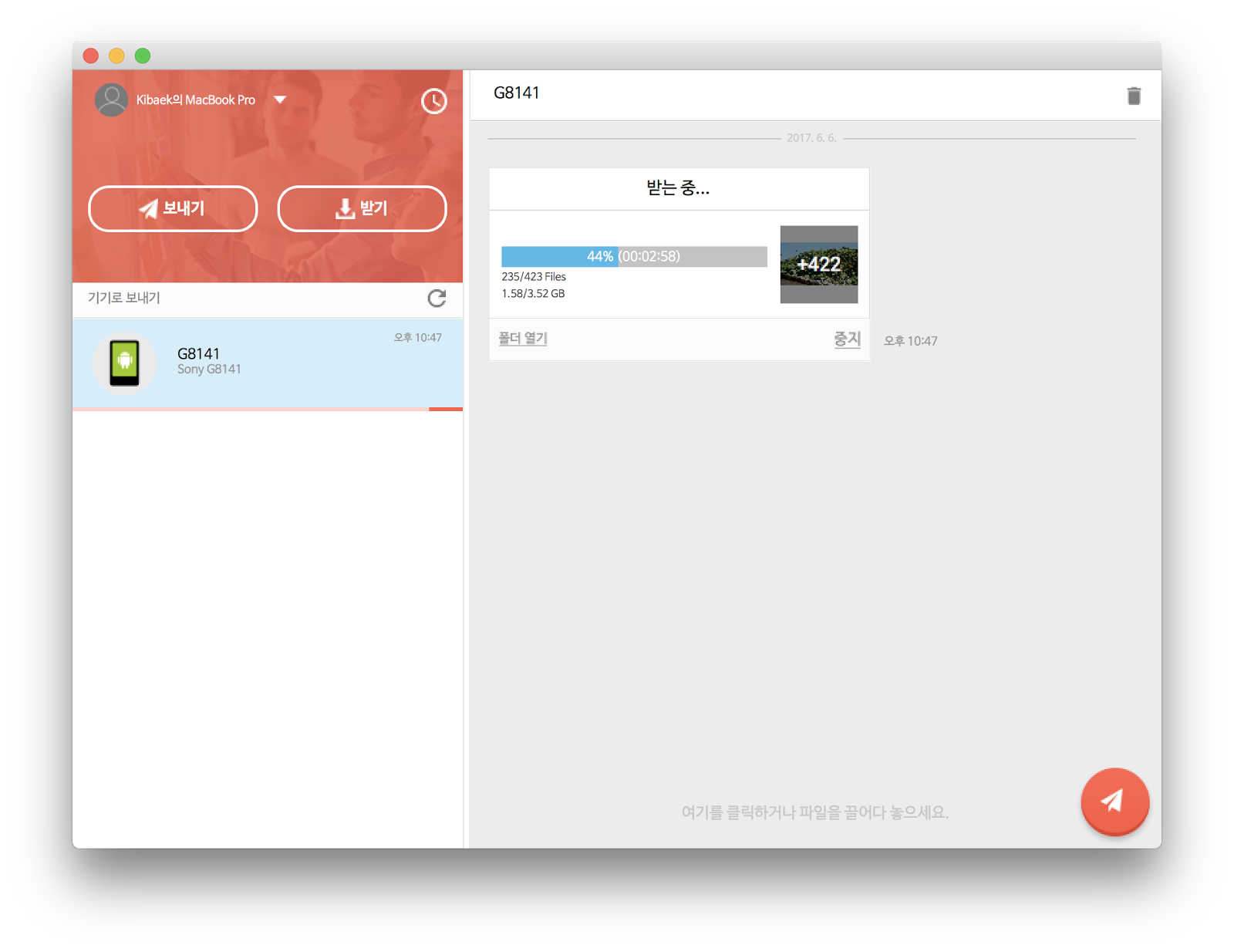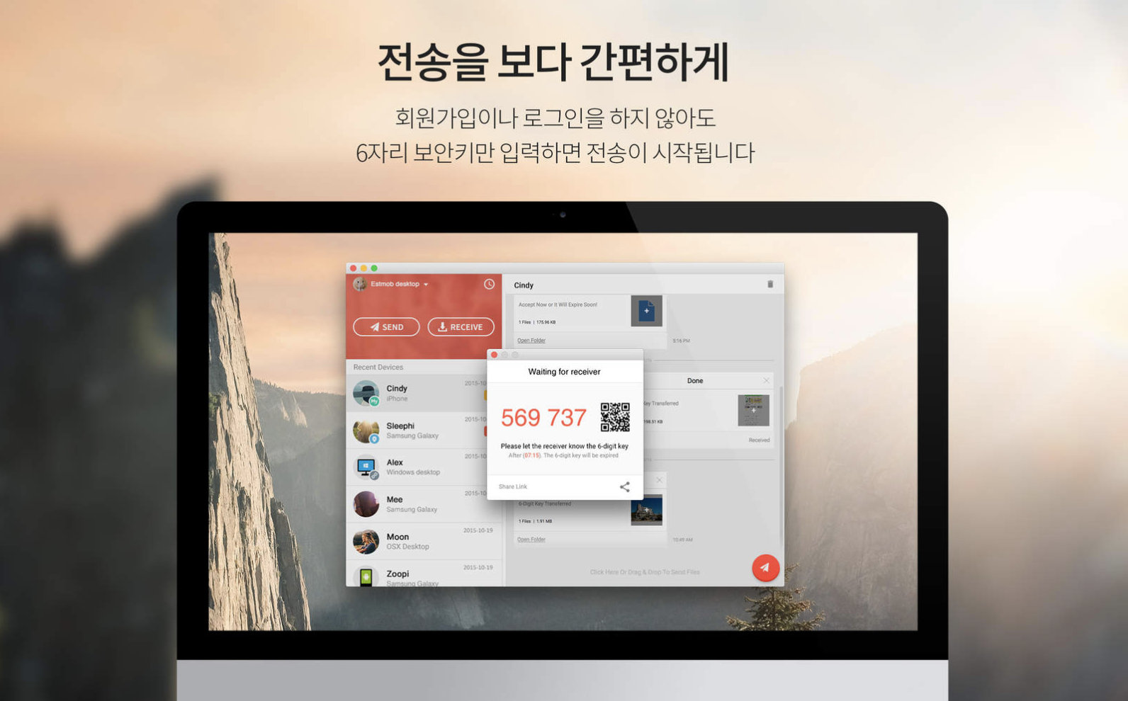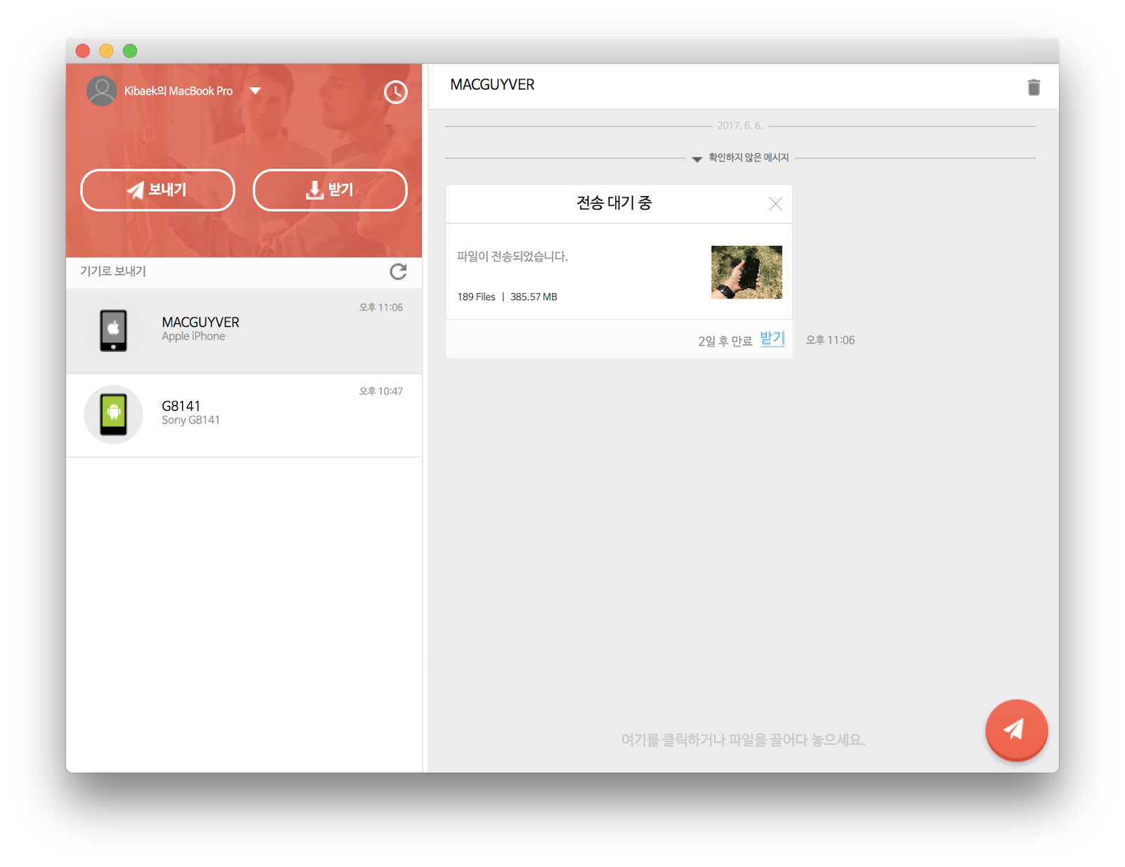 기본적으로는 6자리의 숫자만으로도 파일을 전송할 수 있었고, 한 번 전송한 기기는 바로 등록이 되어서 다음에는 기기를 눌러서 다이렉트로 보내는 것도 가능했습니다.