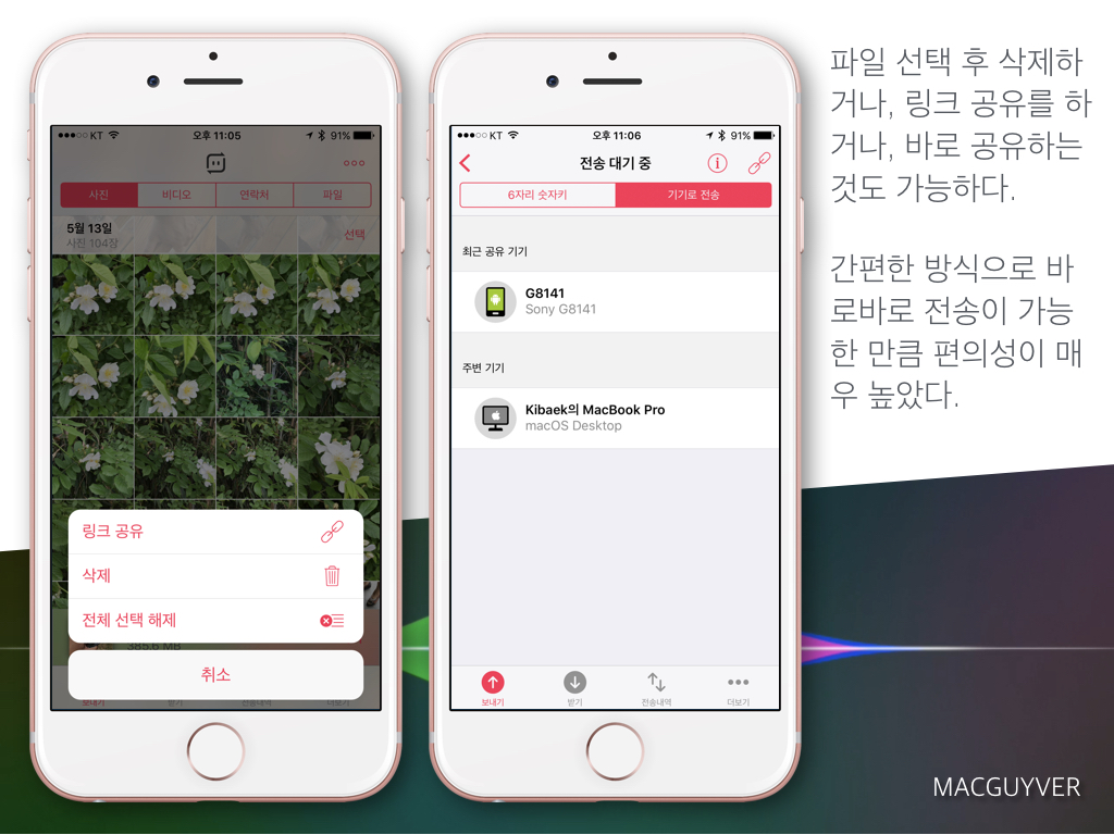 우선, 애플 기기간 근거리 파일 전송 기술인 ‘에어 드롭’보다도 더욱 안정적이고 거리의 제약까지 없어서 구형 애플 기기와도 호환이 가능했고, 최신 맥북 프로나 안드로이드 기기와도 자료 전달이 가능해서 더욱 빠른 속도로 자료를 주고 받을 수 있었습니다.