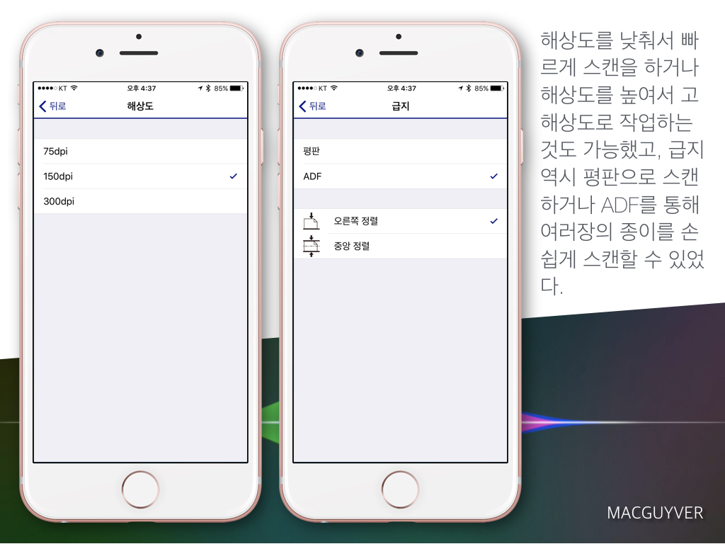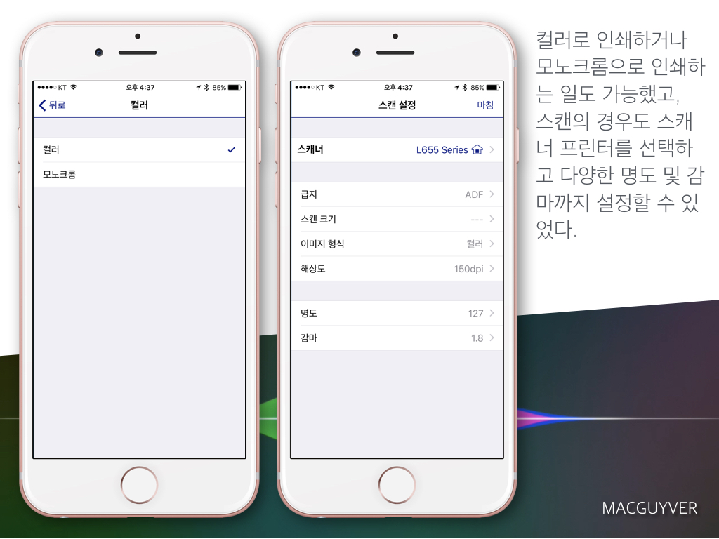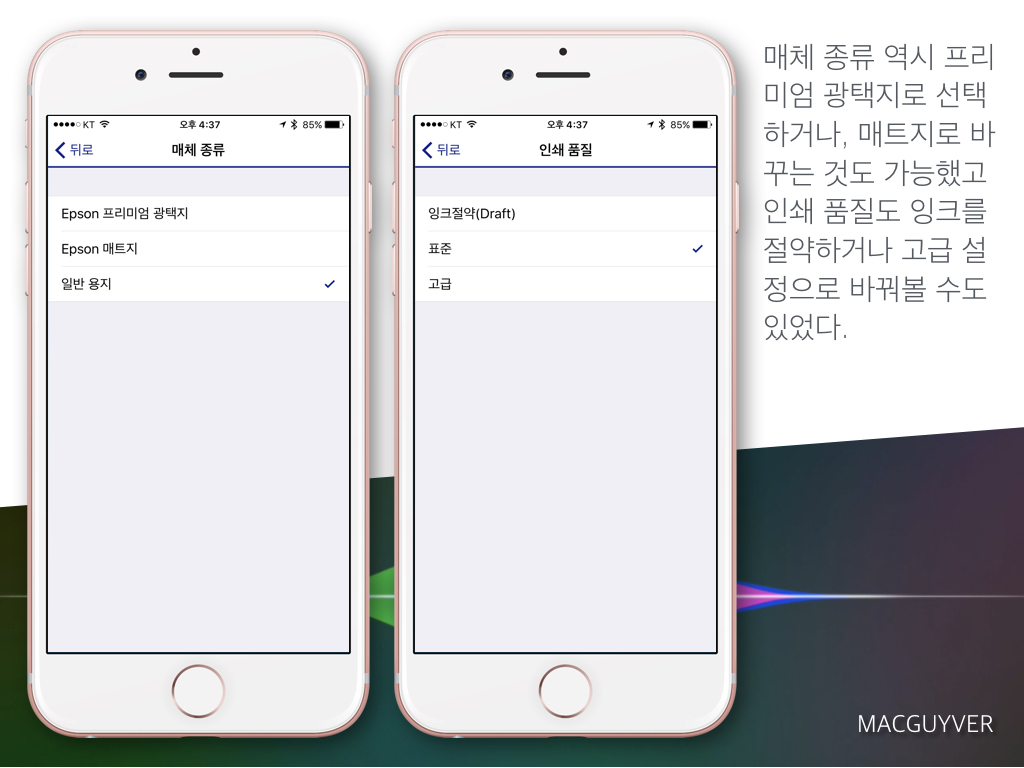 엡손의 Epson iPrint 앱은 기기를 가리지 않고 설정이 가능했습니다.