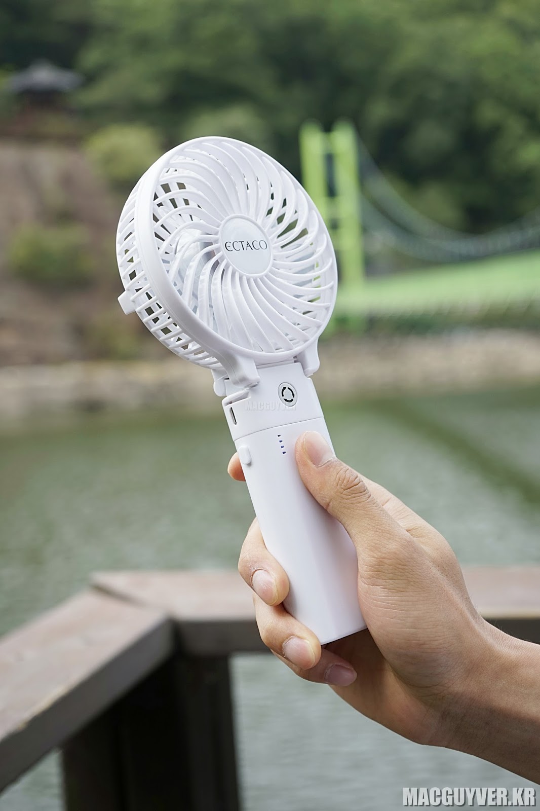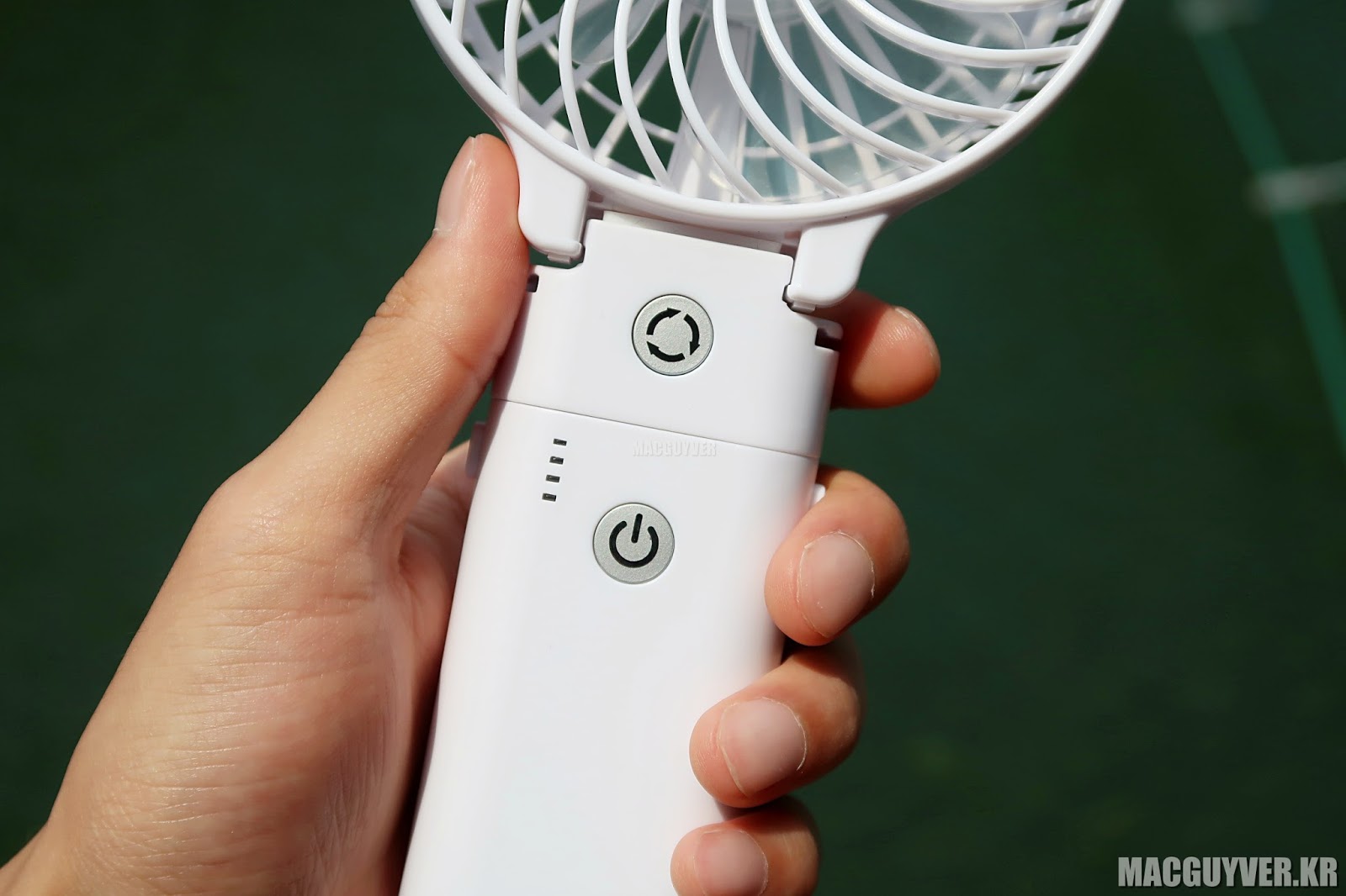 개인적으로는 그립감이 좋다는 점, 폭발 걱정없이 안심하고 사용할 수 있다는 점, 가방에 넣었을 때 눌려서 켜지지 않는다는 점, 핸디형 선풍기이면서 탁상용으로 손을 사용하지 않고 사용할 수 있다는 점이 좋았습니다.