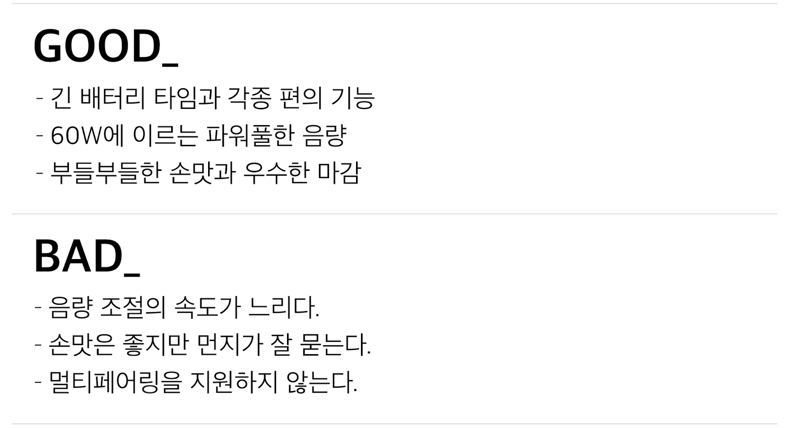 이 블루투스 스피커에는 어떤 장단점들이 있는지 하나하나 살펴보도록 하겠습니다.