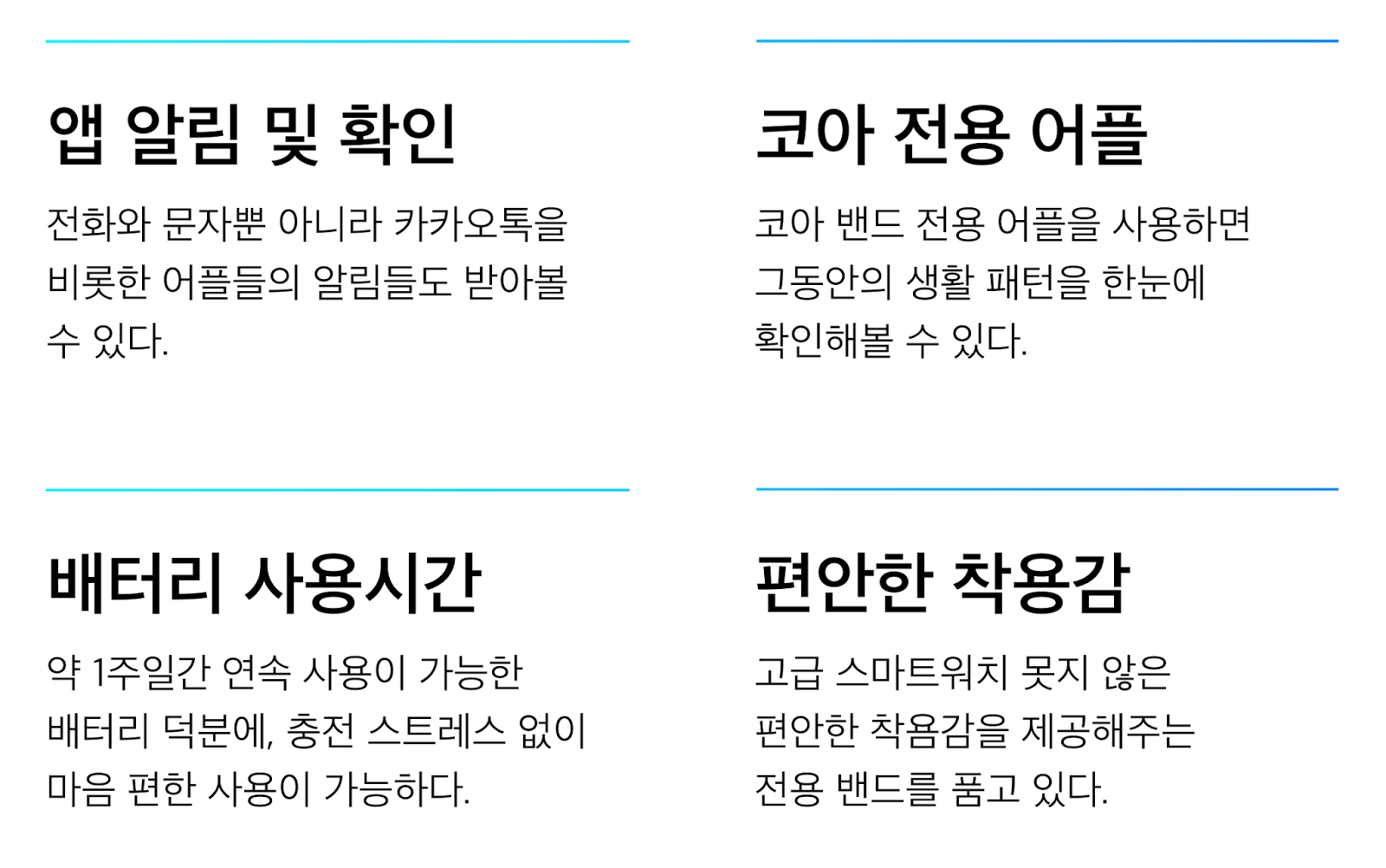 오늘은 개인적으로 생각하기에 유용했던 코아밴드의 기능들에 대해서 알아볼 텐데요. 만약 코아밴드를 구입 하신다면 이러한 기능들을 직접 사용해보시기 바랍니다.