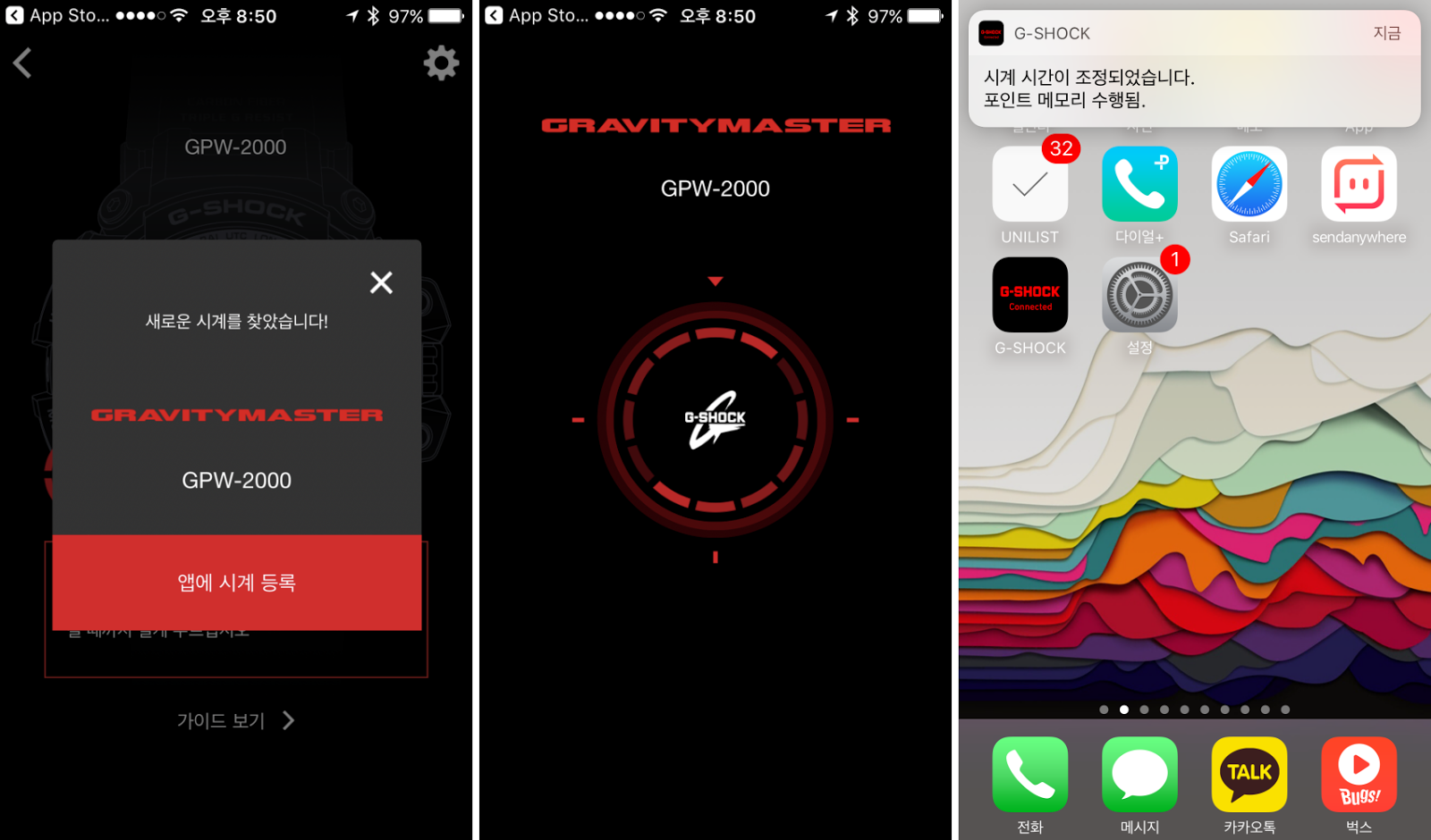 ✎ 시계의 버튼을 눌러서 바로 시간 동기화 및 위치 정보를 저장할 수 있다.