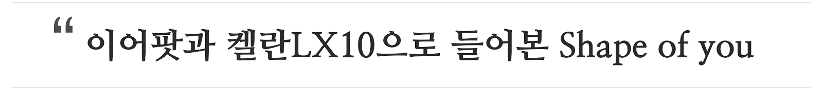 우선 켈란LX10이 들려준 Shape Of You를 따로 평가를 해보자면, 전체적인 해상력이 뛰어나서 사운드가 뚜렷하게 들렸고, 고음이 매우 생생하게 표현되었습니다.