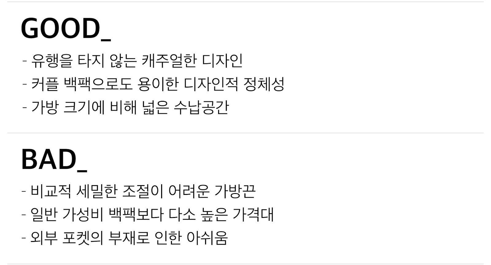 그러한 백팩을 고민 중인 분들에게는 분명 합리적인 선택지가 아닐 것입니다.