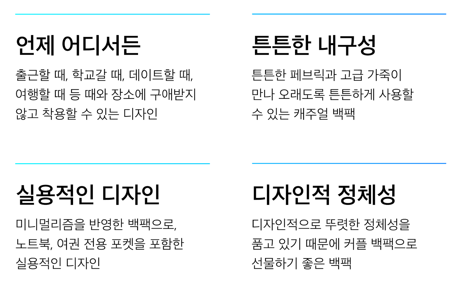 이러한 일화와 이름을 건 브랜드명은 분명 신뢰심을 더해주기는 하지만, 사실 더 중요한 것은 백팩을 구입하고 사용하는 소비자 개개인의 사용자 경험일 것입니다.