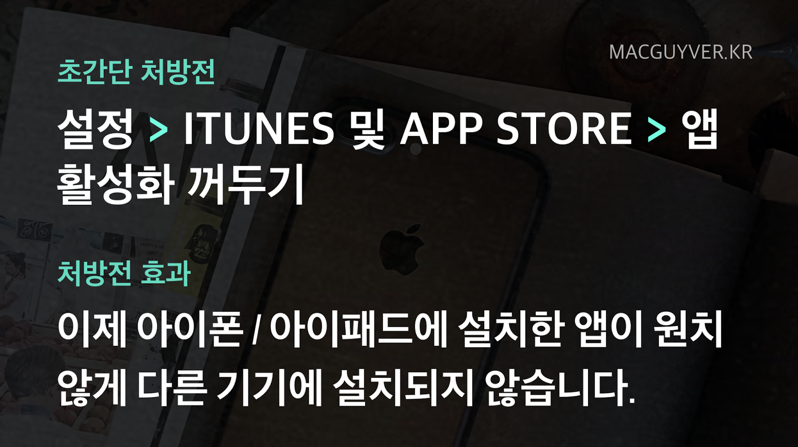 아이폰과 아이패드를 동일한 계정으로 사용하다 보면 발견하게 되는 이상한 증상이 있습니다. 원치 않게 아이폰에 설치한 앱이 아이패드에도 설치되고, 아이패드에 설치한 앱도 아이패드에 자동으로 설치되는 것이죠.