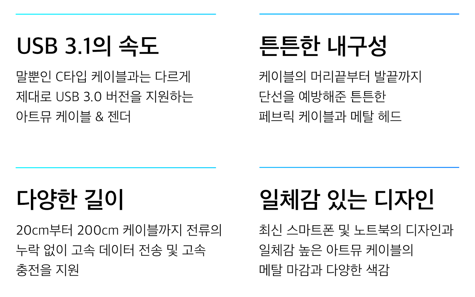 그리고 7, 8월에 곧 출시하게 될 아트뮤 USB 3.1 gen2 케이블도 고려해본다면 좋을 것 같습니다.