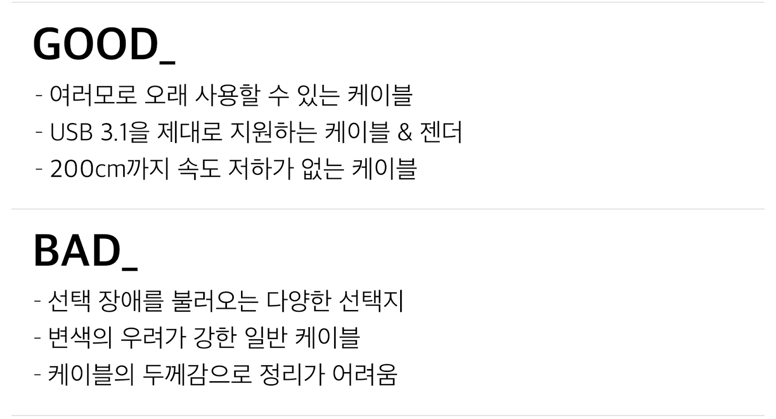 반대로 생각해보면 그렇지 않은 케이블이 많다는 것입니다.