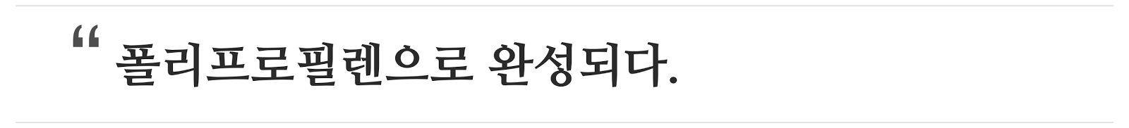 이 재질은 의료기기에 주로 사용되는 재질로, 탄소와 수소로 만들어져서 녹는점이 165도로 매우 높을 뿐 아니라 불이 붙더라도 환경호르몬을 배출하지 않아서 안심할 수 있는 재질이라 부를 수 있습니다.