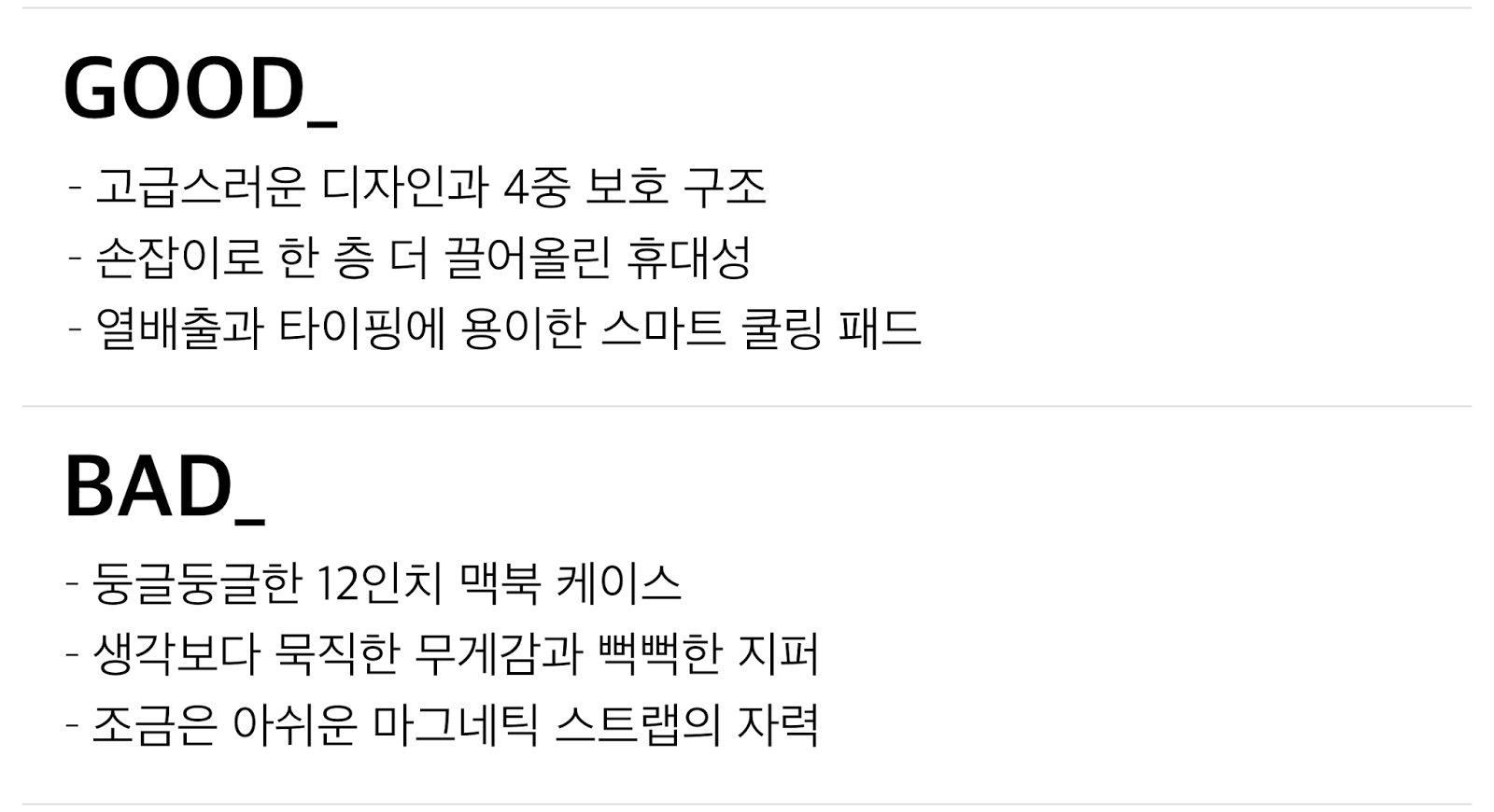 먼저 자신이 이미 가지고 있는 휴대용품들은 어떤 용도에 적합한지, 그리고 나는 어떤 방식으로 맥북을 휴대하고 사용하는지, 그리고 이 맥북 악세서리를 추가하는 것이 합리적인 선택인지 고민해 본다면 현명한 소비자가 될 수 있을 것입니다.