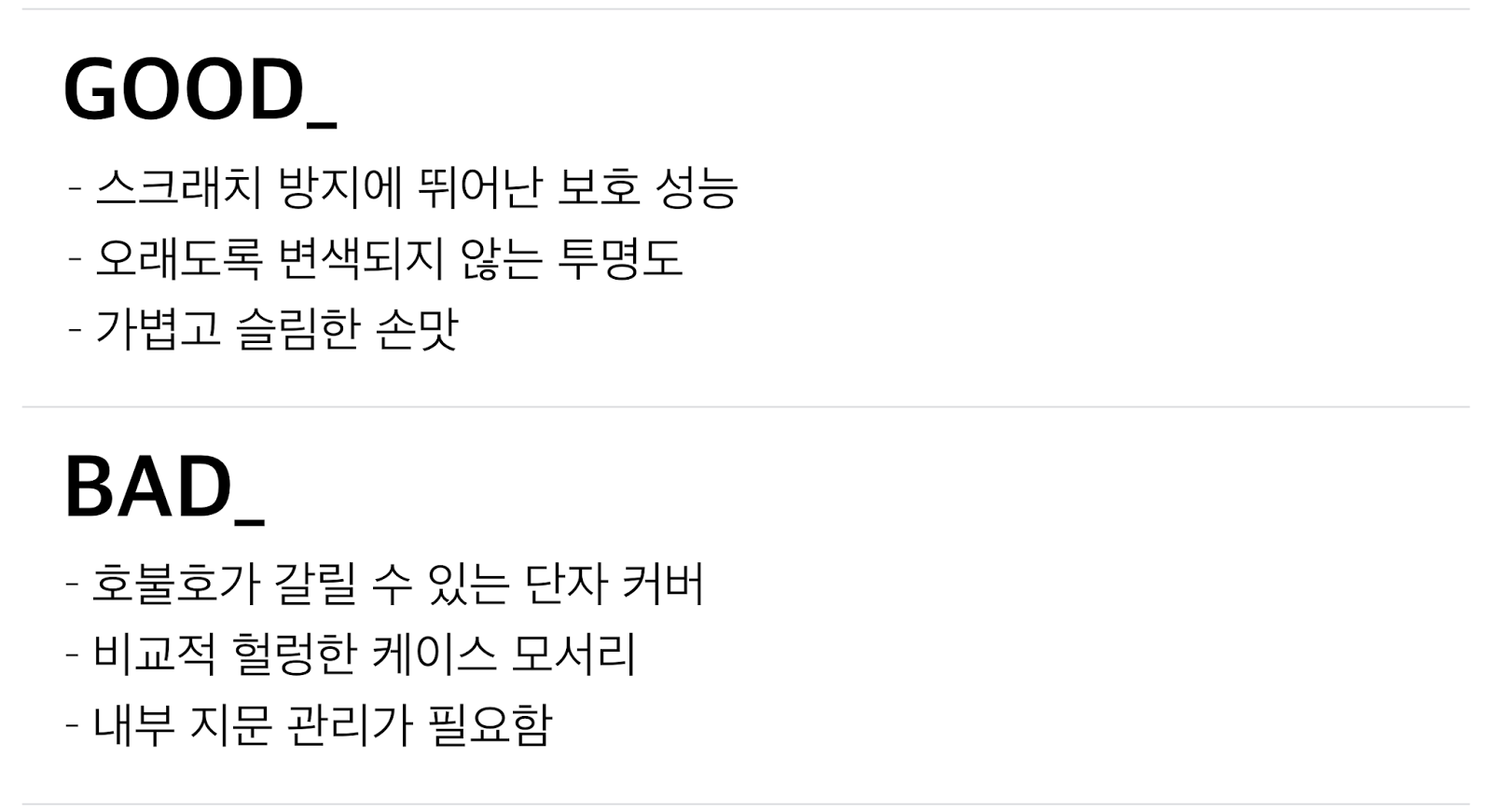 또한 평소에 후면 스크래치에 민감했던, 그렇지만 생폰의 디자인을 즐기고 싶었던 분들에게 적합할 것 같습니다.