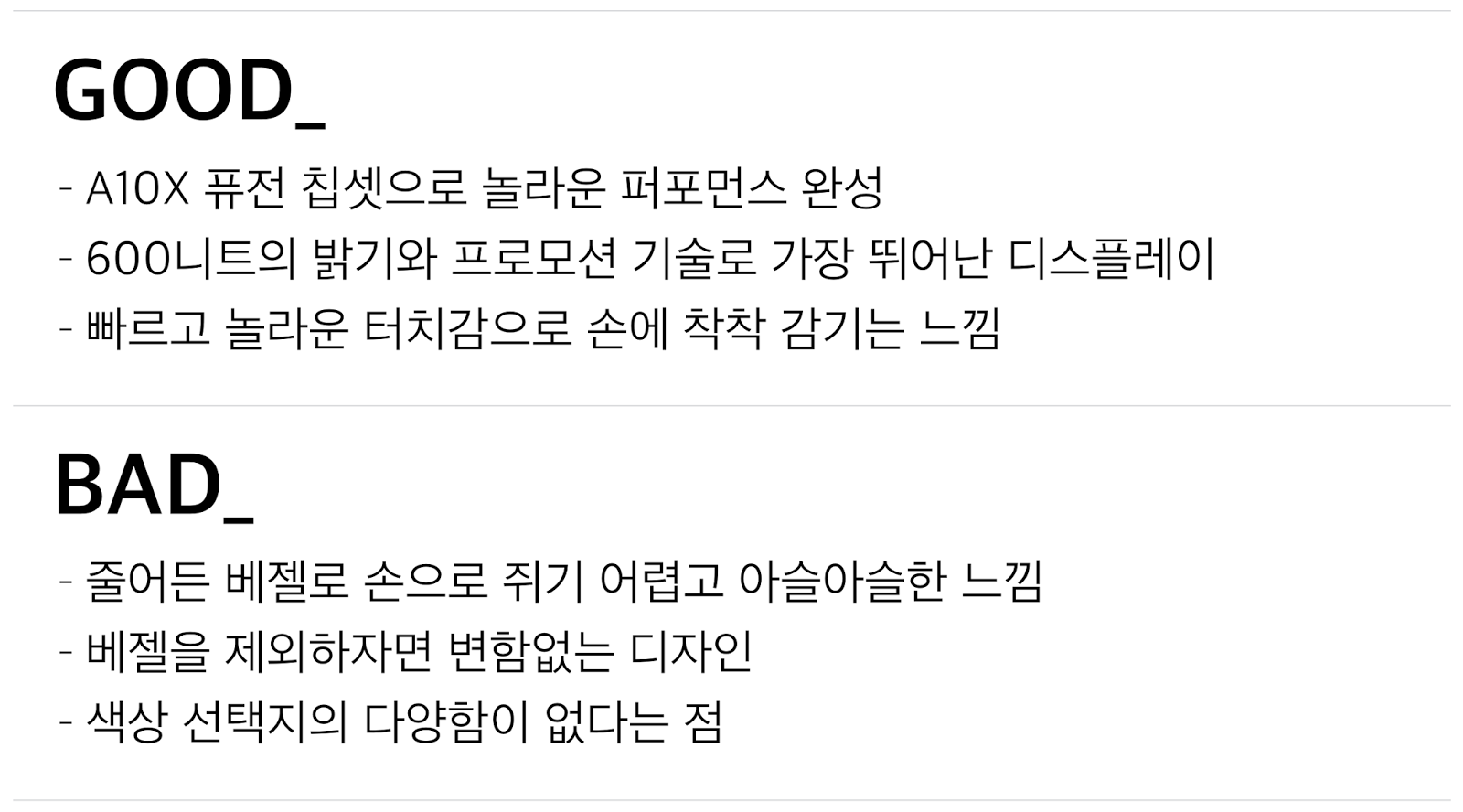 소프트웨어적으로 오터치를 예방하는 기술이 있어서 오작동은 염려가 되지 않았지만 줄어든 베젤로 인한 2%의 아쉬움도 없지는 않았던 것이죠.