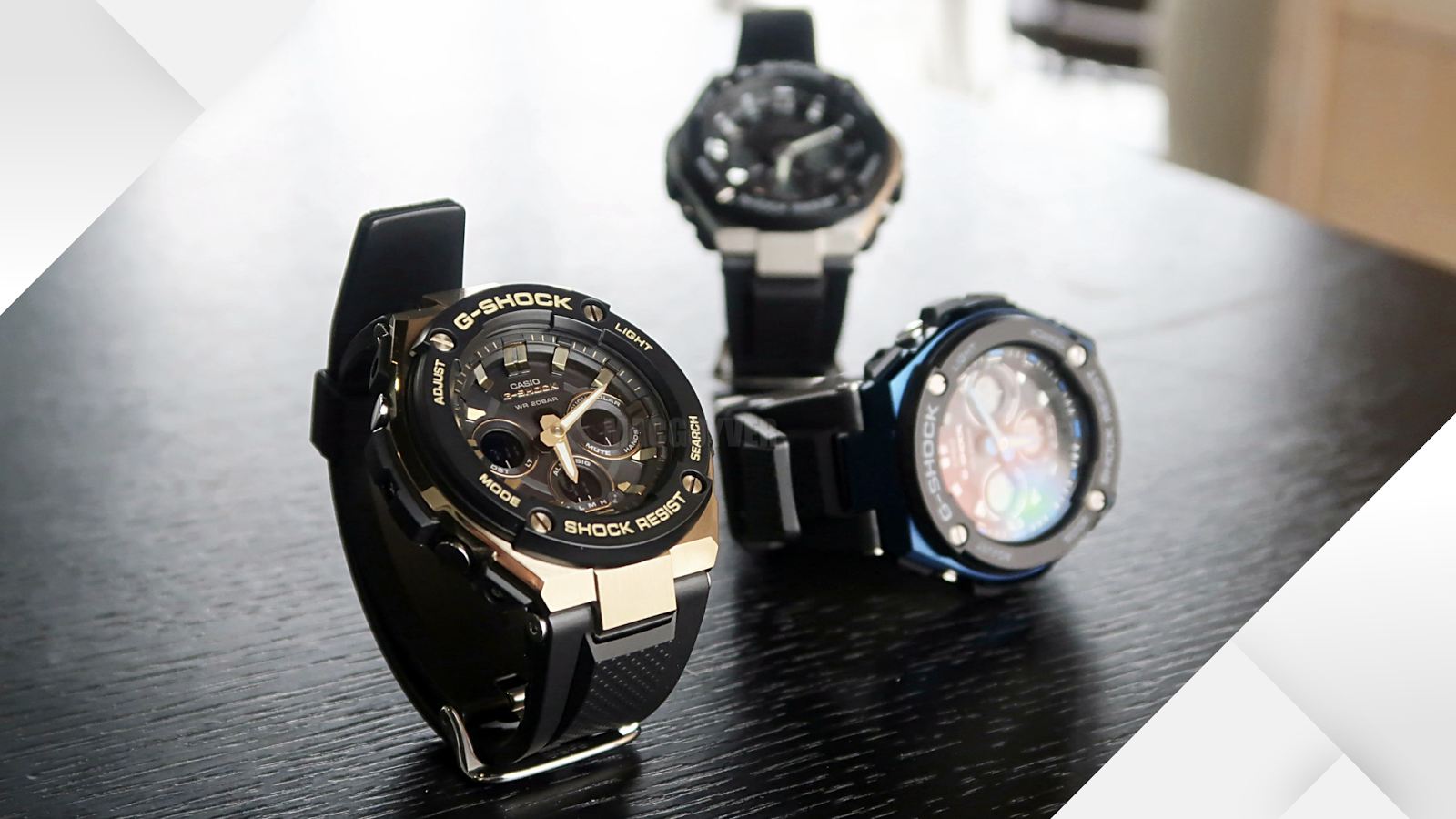 블랙 컬러로 마감된 GST-S300BD-1ADR 모델은 특히나 골드와 매치가 되면서 고급스러움을 제대로 어필했는데, GST-S300 시리즈 특유의 초침이 하단부 디지털 화면으로 나온다는 점에서 더욱 심플하고 슬림한 느낌이 제대로 전달되기도 했다.