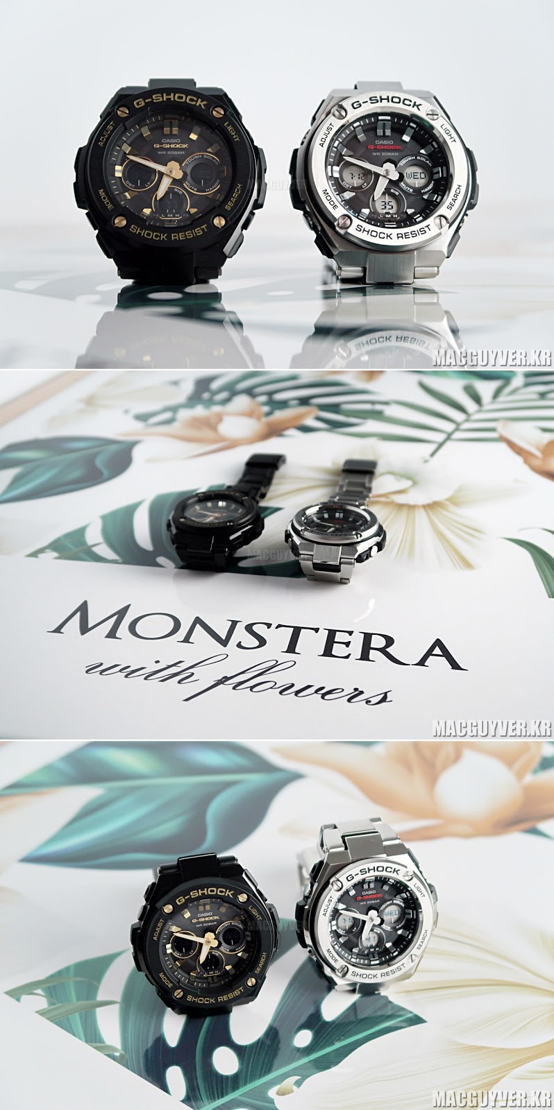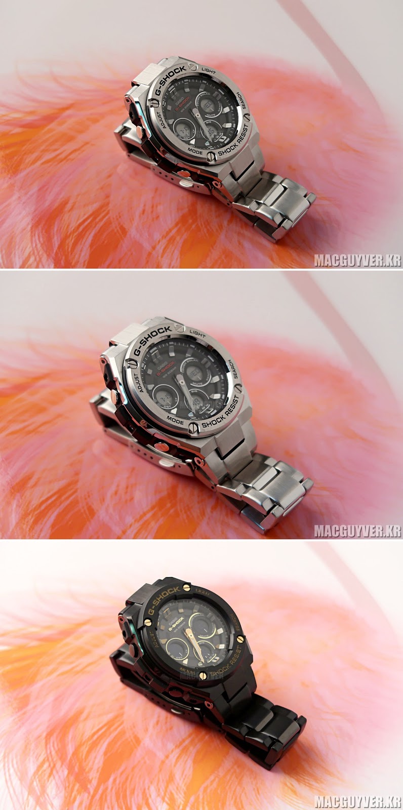 가장 기본이 된다고 볼 수 있는 GST-S310D-1ADR 모델은 실버 컬러를 중심으로 내부 다이얼쪽의 블랙 컬러와 믹스 매치를 하면서 단정하면서도 강인한 느낌을 전달해줬는데, 특유의 스틸 재질을 제대로 표현했기 때문에 그 점에서도 만족도가 매우 뛰어난 레퍼런스라고 부를 수 있었다.