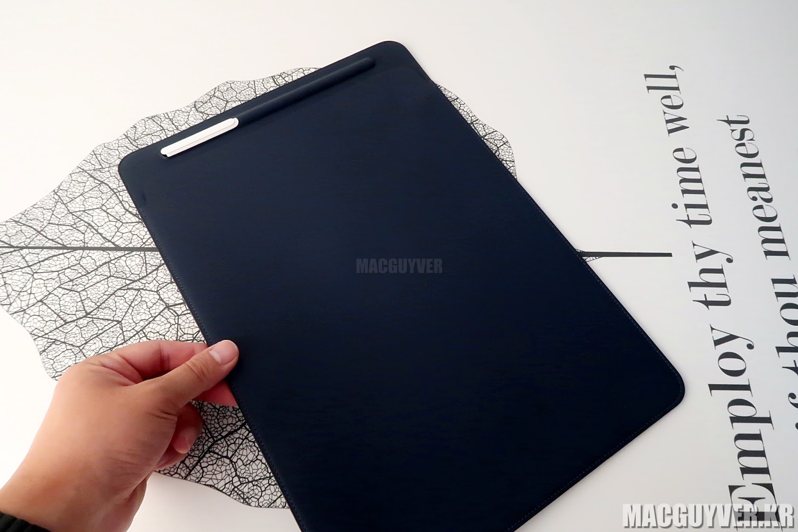 물론, 12.9형 가죽 슬리브는 크기도 커서 상당히 많이 쳐지기도 했는데요. 그럼에도 가죽의 재질을 제대로 보여줬다는 점에서는 나쁘지 않았습니다.