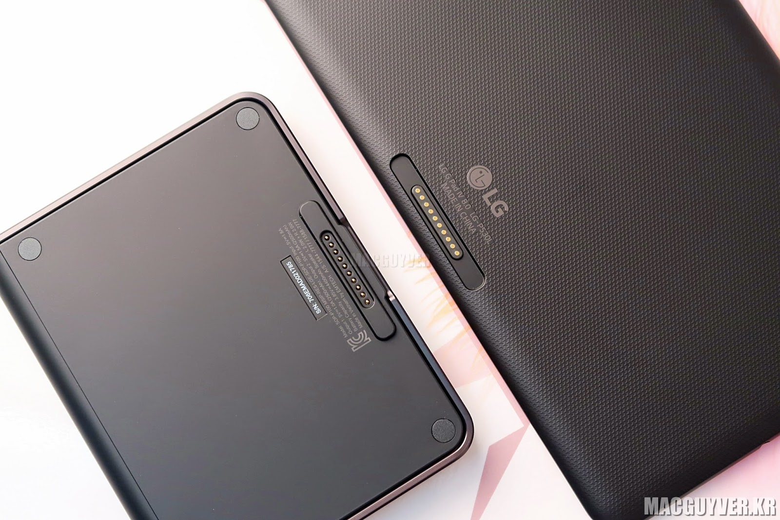그리고 G패드4에는 마치 아이패드의 스마트 키보드를 위한 독처럼 보조배터리를 위한 별도의 독이 있는데, 덕분에 케이블 없이 심플하게 보조배터리를 결합할 수 있습니다.