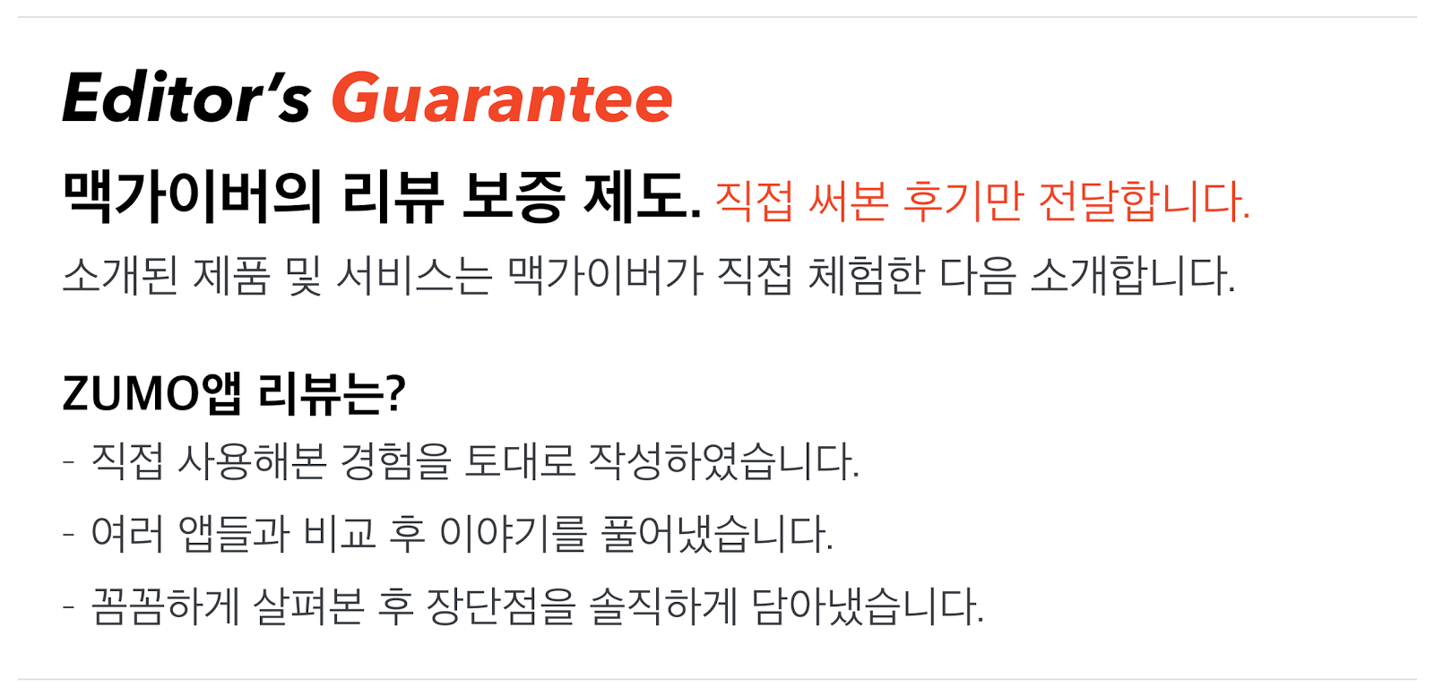 이처럼 ‘주말에 뭐 하지? ZUMO앱’은 주말에 가볼만한 곳을 찾고 있는 연인들, 국내 여름 휴가지를 찾고 있는 가장들, 방학을 알차게 보내고 싶은 대학생들이 한 번쯤 설치해볼만한 어플인 것 같습니다. - MACGUYVER.