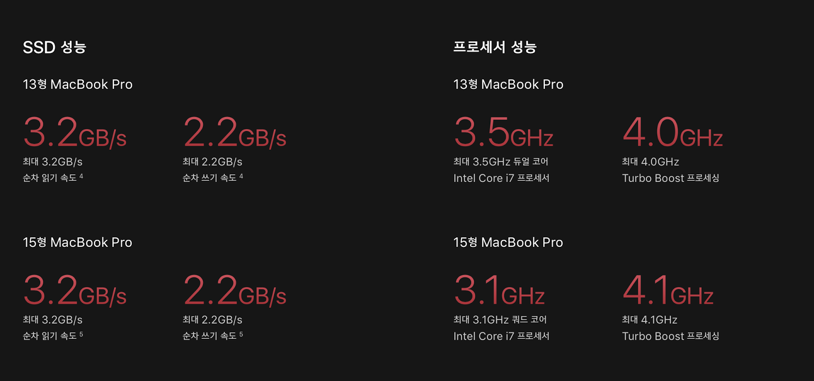 개인적으로는, 이미 2~3년 전부터 놀라운 스피드라고 평가를 받았던 맥북 프로의 SSD 속도가 나날이 발전하는 것에서 더욱 놀랍다는 생각이 들기도 했습니다.
