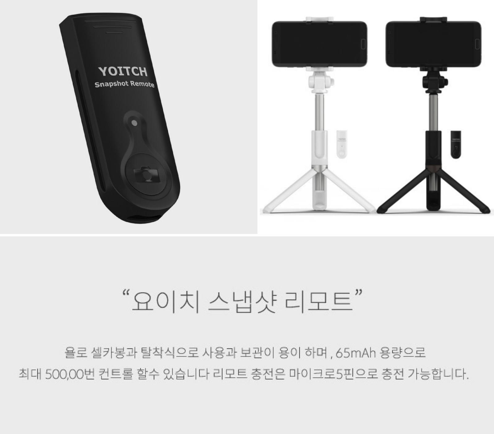 그렇다면, 나만을 위한 그리고 모두를 위한 무선셀카봉은 어떠한 차별점을 지니고 있었을까요? 이제부터 200% 솔직하게 요이치 무선 블루투스 셀카봉 겸 삼각대를 파헤쳐 보겠습니다.