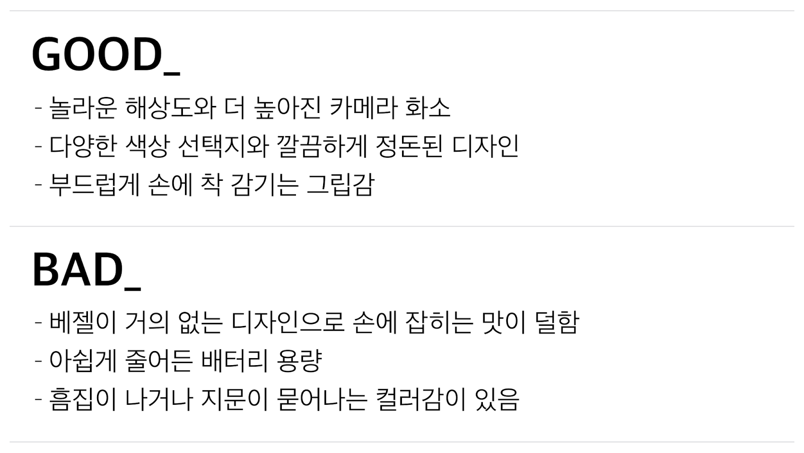 무엇이 더 좋았다고 기억하기보다는 저마다 치열한 경쟁 속에서 나름의 생존 방식을 택했다고 표현하는 것이 좋을 것 같습니다. 둘 다 충분히 좋은 스마트폰이었기 때문입니다. - MACGUYVER.