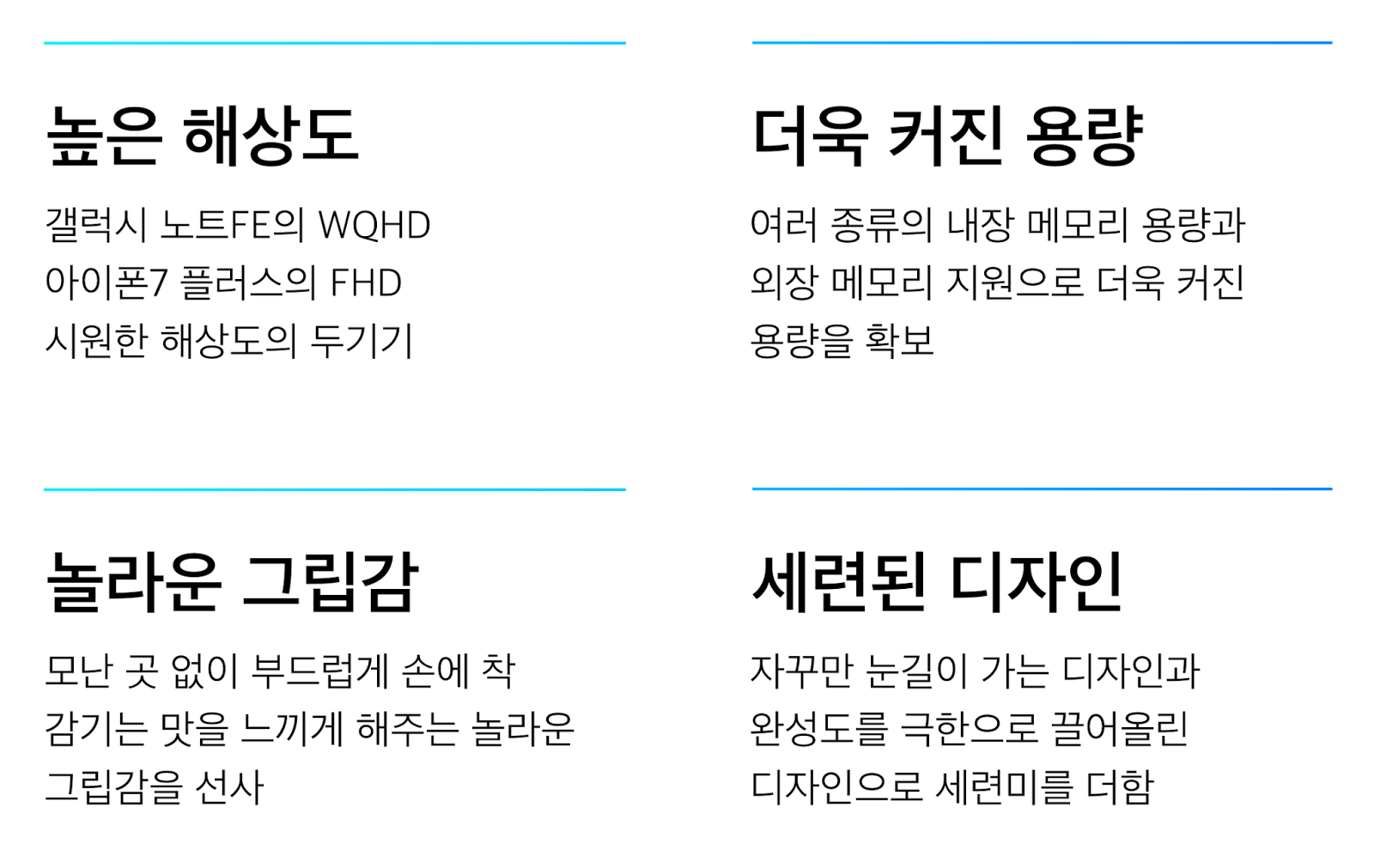 거기다 깔끔하게 정돈된 디자인은 말 그대로 디자인의 완성이라고 부를 수 있을 정도였고, 블루 코랄 컬러 역시 갤럭시노트FE의 디자인을 살려주는데 한몫을 단단히 한 것 같았습니다.