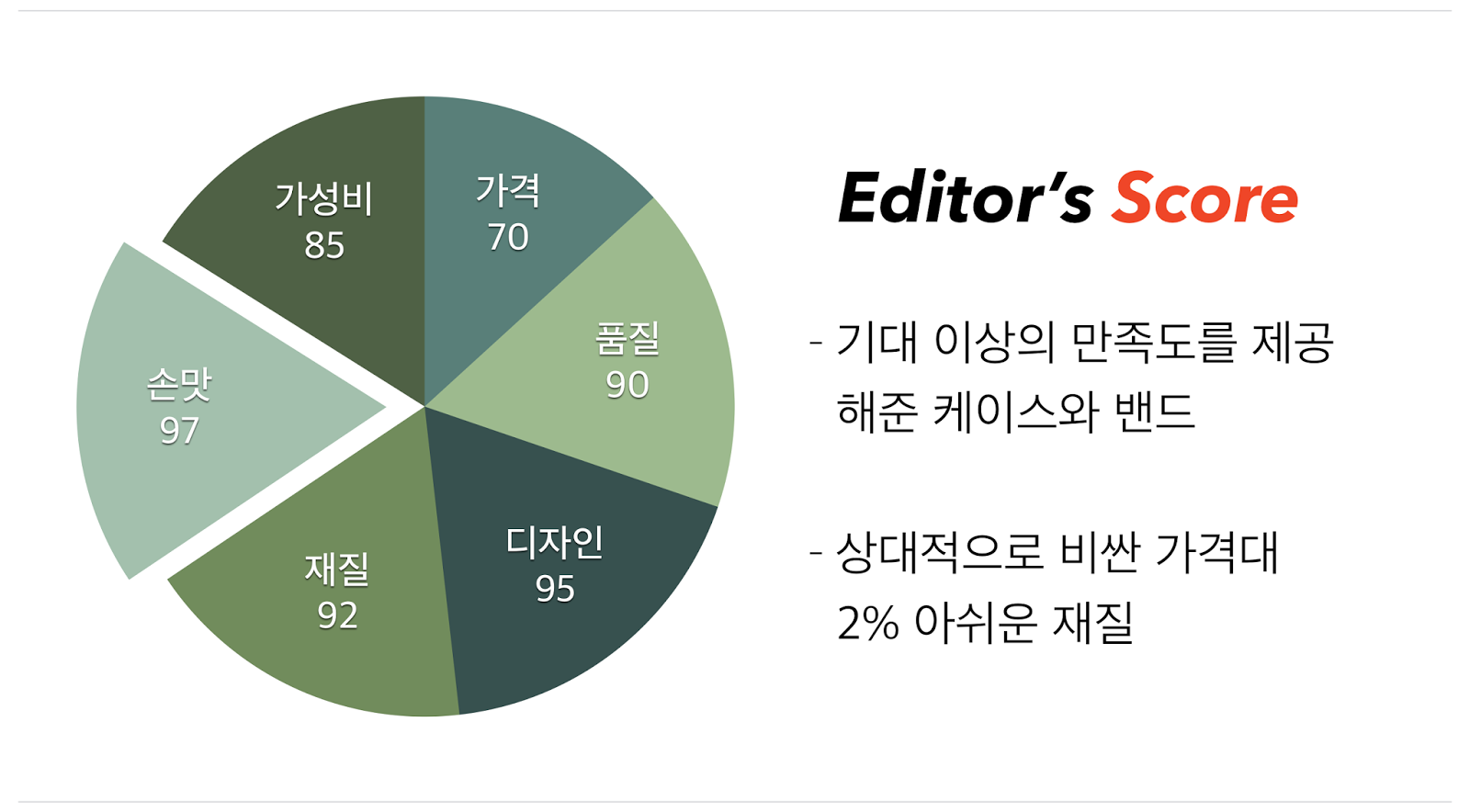 기존 애플 정품 스포츠 밴드와 비교를 하자면, 재질의 차이로 인해서 피부에 붙지 않았고, 또한 매우매우 가벼워서 무게감이 사실상 없다고 표현할 수도 있었습니다. 컬러감이나 재질감은 상당히 느껴지기도 했는데요. 제법 튼튼하게 마감이 되어서 오랫동안 사용할 수 있을 것 같은 내구성도 가지고 있었습니다.