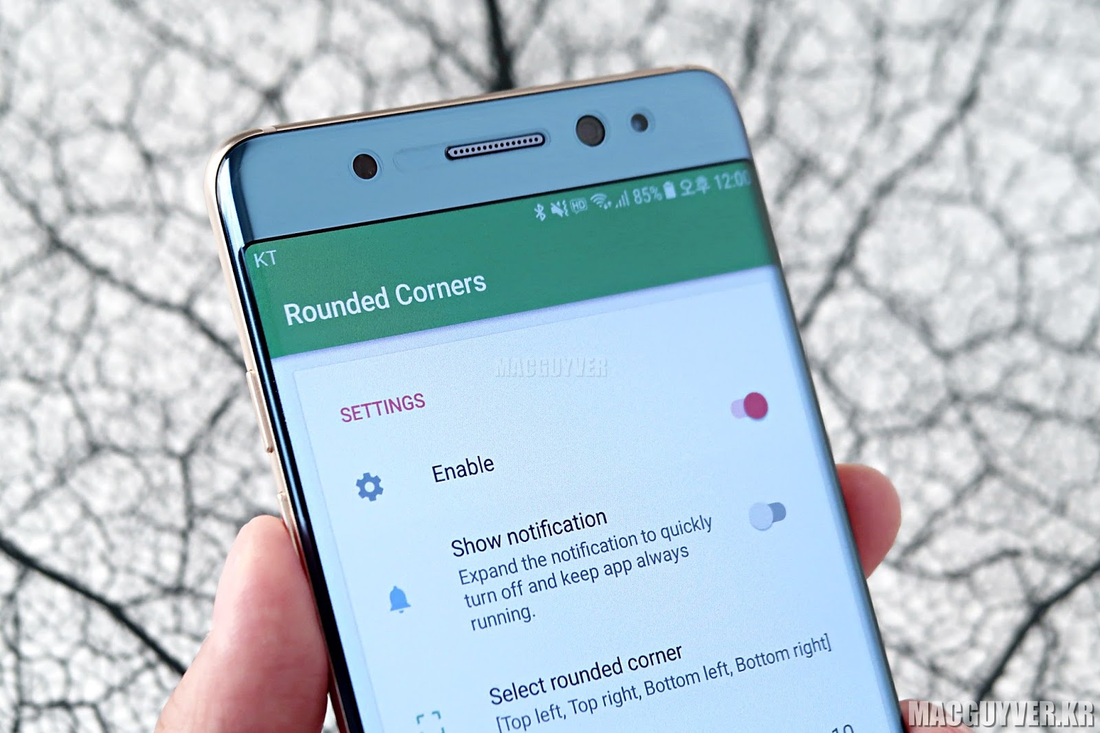 갤럭시노트FE를 갤럭시S8처럼 만드는 아주 쉬운 방법, Rounded Corners와 같은 모서리 라운딩 앱을 활용해보는 것은 어떨까요? - MACGUYVER.