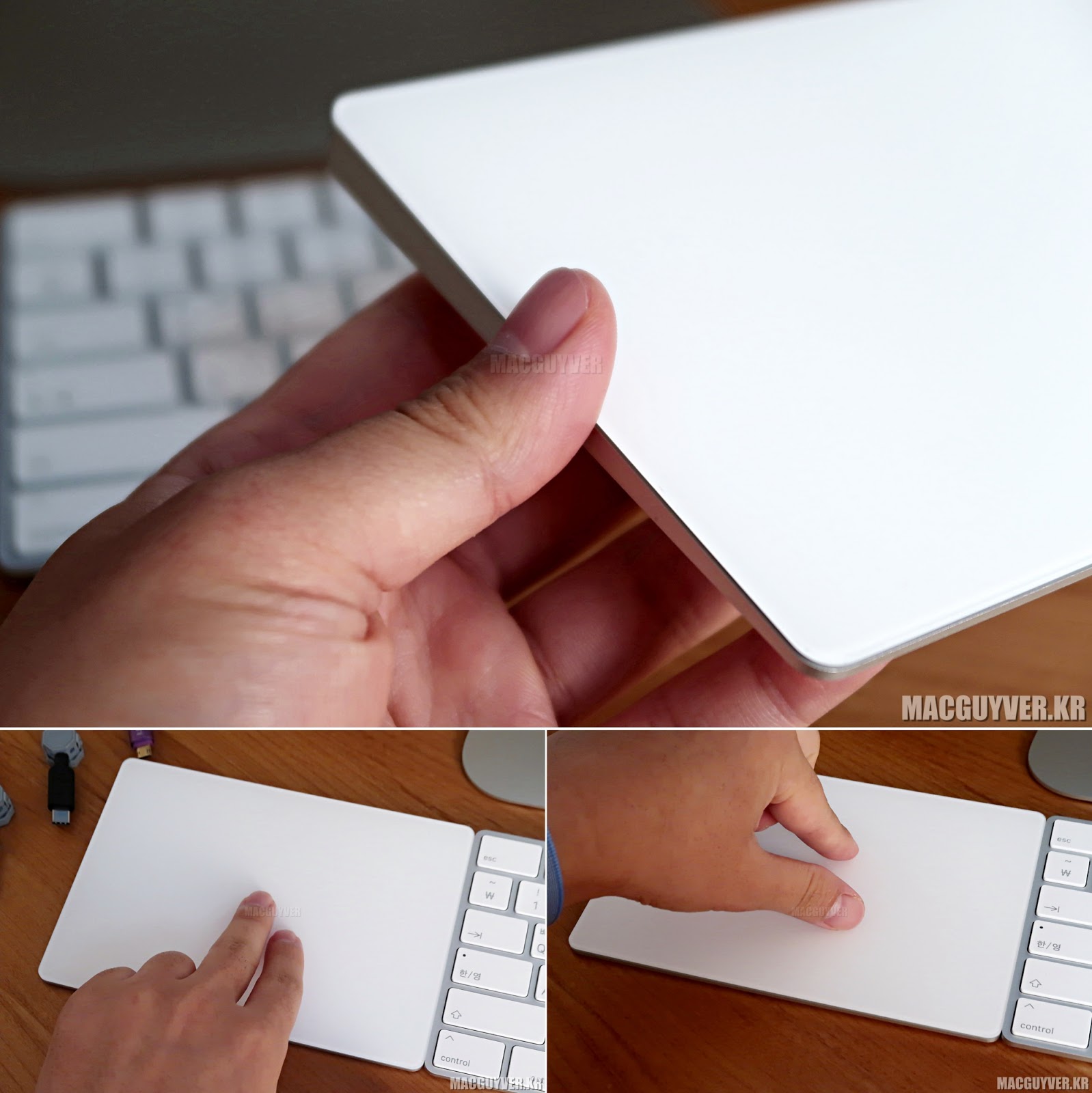 무엇보다 이전 트랙패드와 비교해서 30%가량 더 넓어진 트랙패드 면적을 통해서 자유롭고 다양하게 활용할 수 있다는 점도 좋았는데요. 무게는 230g 정도였고, 가로 너비는 16cm이기 때문에 매직 키보드와 함께 사용하기 위해서는 적어도 60cm 이상의 공간은 필요했습니다.
