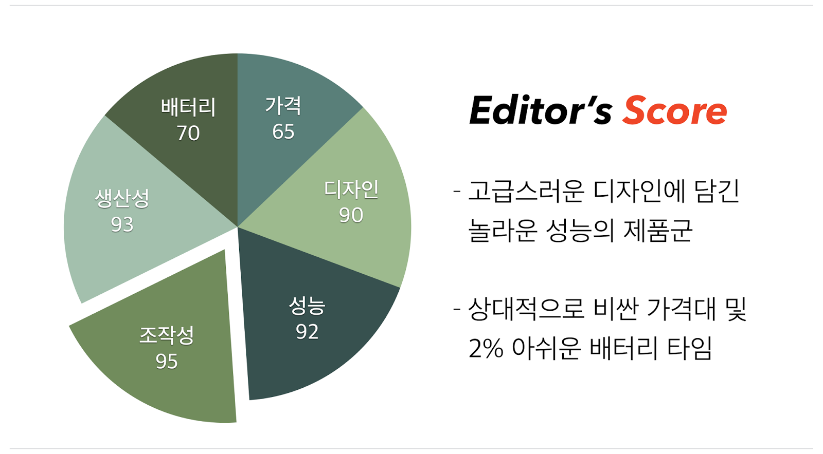 하지만 실 사용 시 아쉬움이라면 충전하며 사용할 수 없는 하단부 충전 단자의 위치를 비롯해서 배터리를 자주 충전해줘야 한다는 점에서 2%의 아쉬움이 있기도 했습니다.
