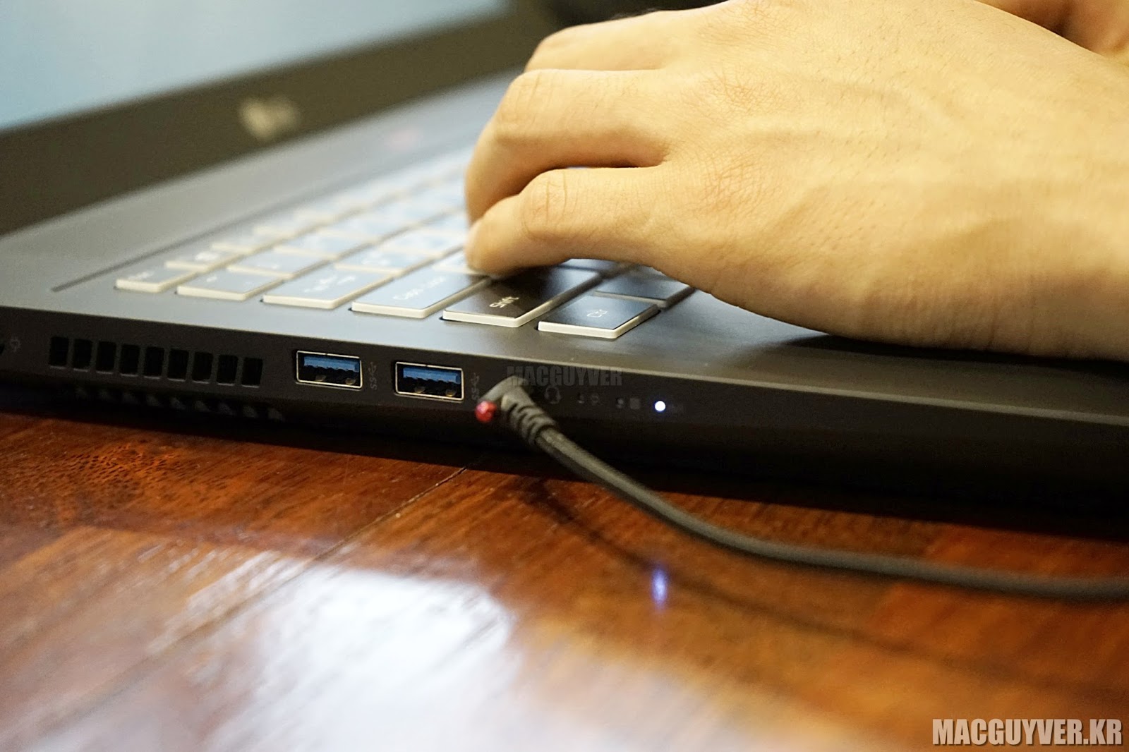 외부적으로 다양한 포트를 지원하기 때문에 4K 출력도 거뜬했고, 3면 입체 스피커는 게임의 현장감을 더욱 높여주기도 했는데요. 뛰어난 보안성과 최적의 퍼포먼스를 위해 윈도우10을 탑재했고, 15.6인치의 1920 x 1080 해상도 디스플레이까지 더하며 게임을 위한 모든 준비를 끝낸 듯 보였습니다.