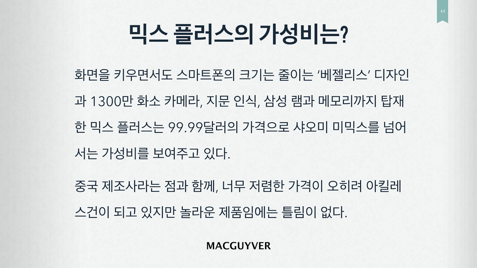 과연, 믹스 플러스는 또 다른 샤오미 미믹스가 될 수 있을지, 실제 소비자들에게 좋은 평가를 받는 스마트폰이 될 수 있을지, 아니면 어느새인가 사라질 스마트폰이 될지 지켜봐야겠다. - MACGUYVER.