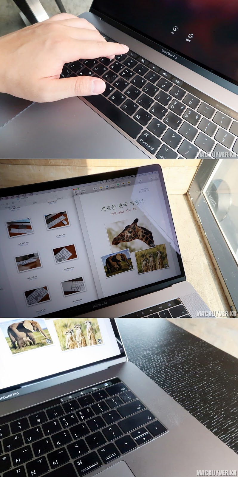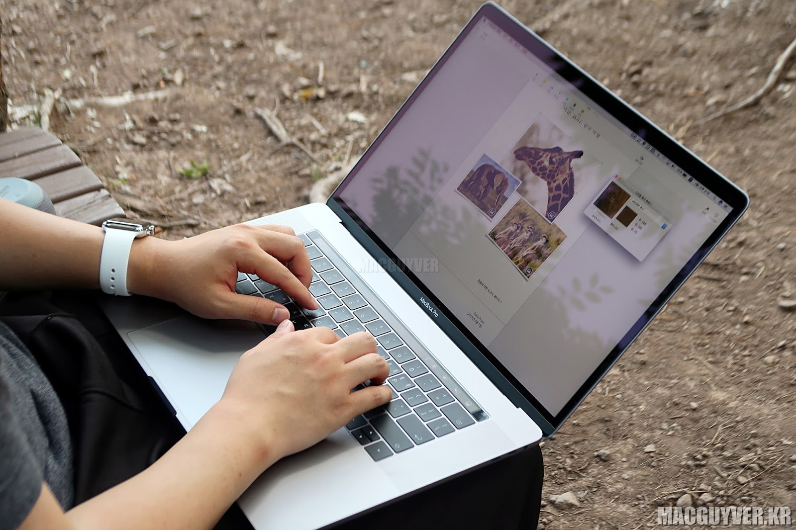 어디든 펼치기만 하면 나만의 캔버스가 된다는 것은 이미 그 자체로 더욱 얇아지고 가벼워진 맥북 프로 레티나 15인치 2017 모델의 장점이 아닐까 싶었습니다. - MACGUYVER.