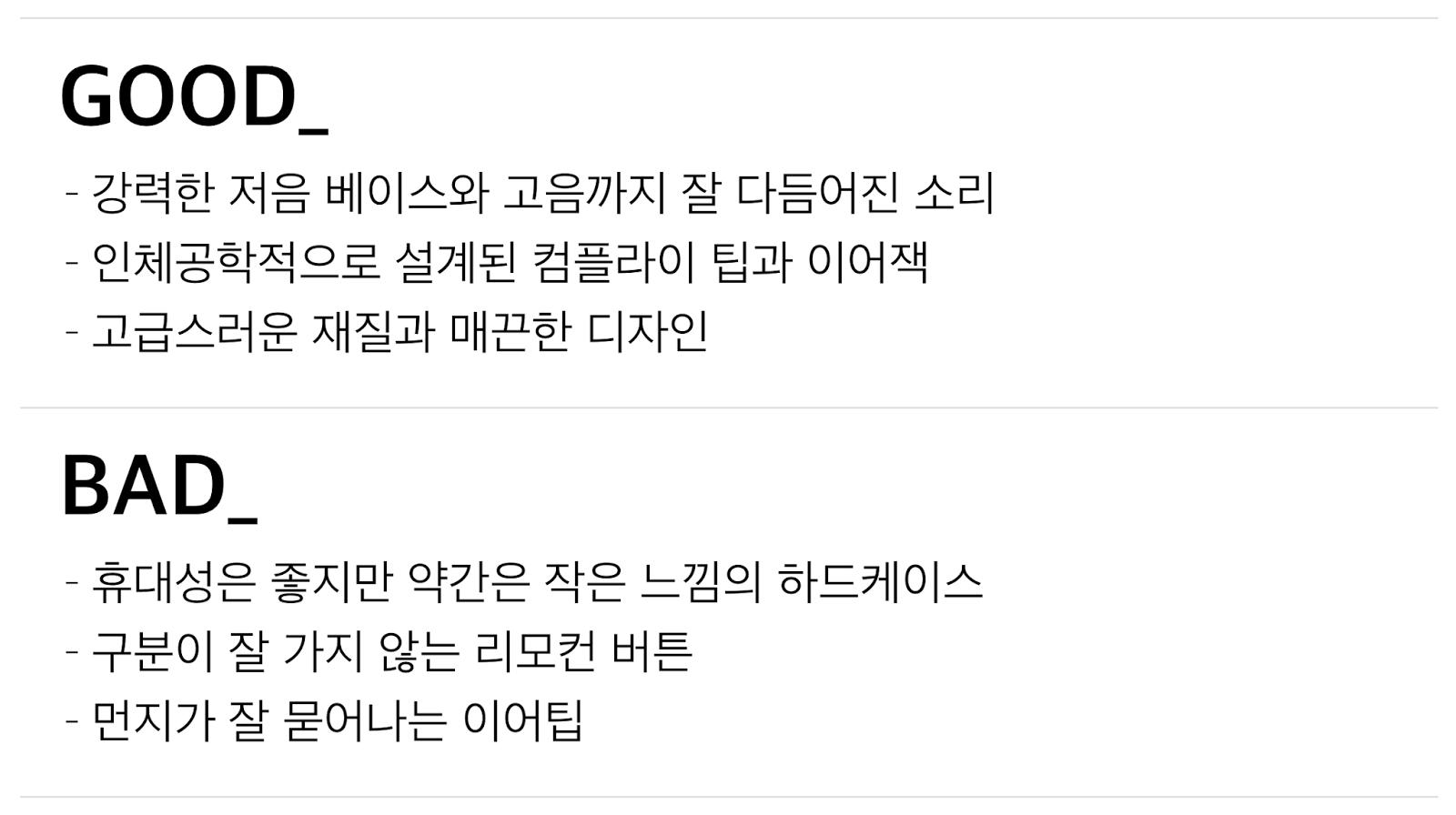 ✎ 인체공학적인 구조의 컴플라이 팁으로 음악의 듣는 맛을 전달해줬습니다.