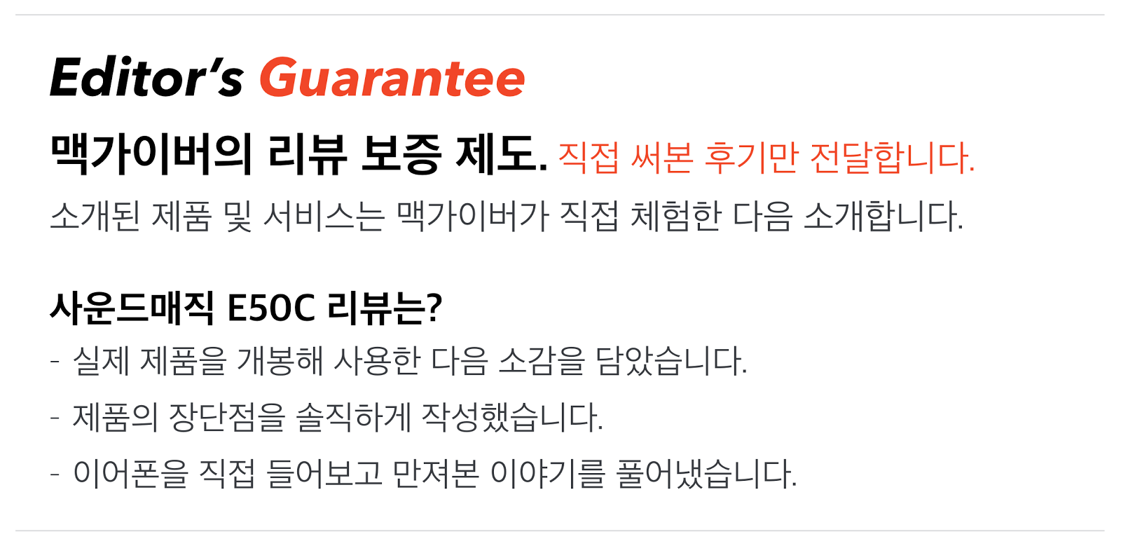 직접 들어본 사운드매직 E50C는?