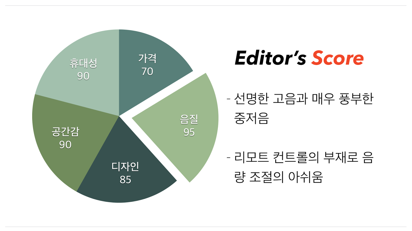 ✎ 중저음과 초고음까지 넘나드는 맑고 시원한 사운드로 넓은 공간감을 주었습니다.