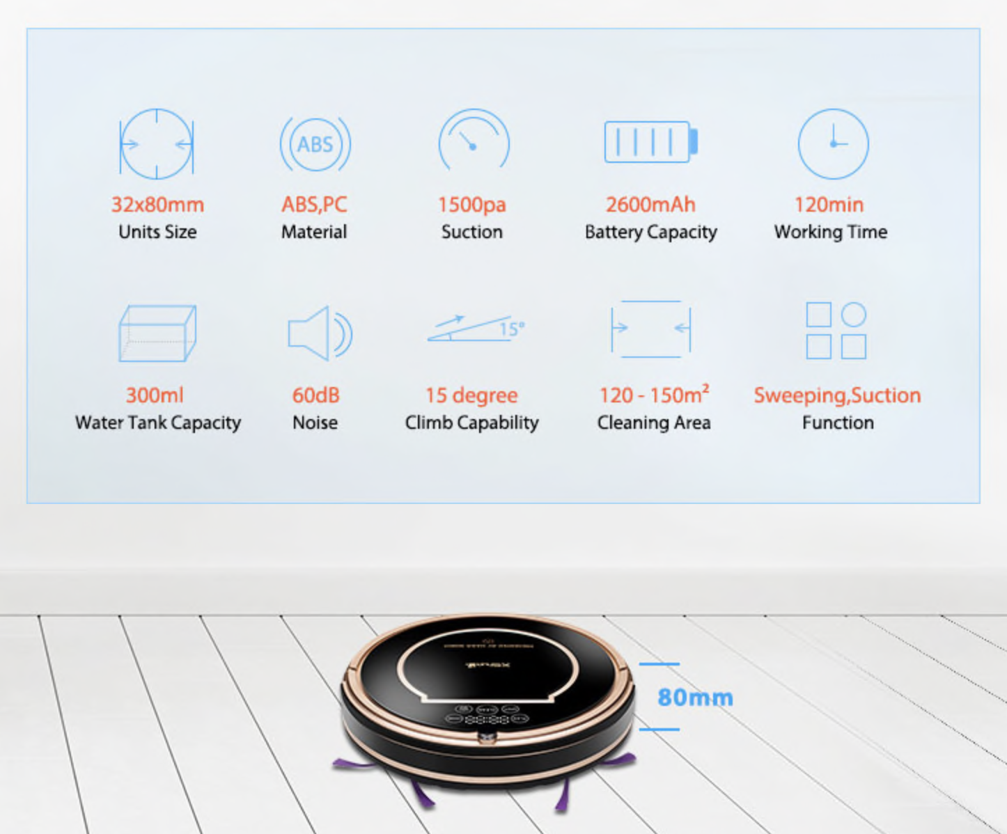 또한 9cm의 슬림한 바디를 통해서 가구 밑에도 쉽게 들어가며, 자체 배터리를 통해 2시간 동안 청소가 가능하고 물걸레 청소 기능까지 품어서 더욱 실용적이라는 평가가 많다. 이외에도 목재를 비롯해 카펫이나 타일과 같은 다양한 바닥면에서의 청소를 지원하기 때문에 일반적인 청소기 못지않은 청소 기능을 수행하고 있다.