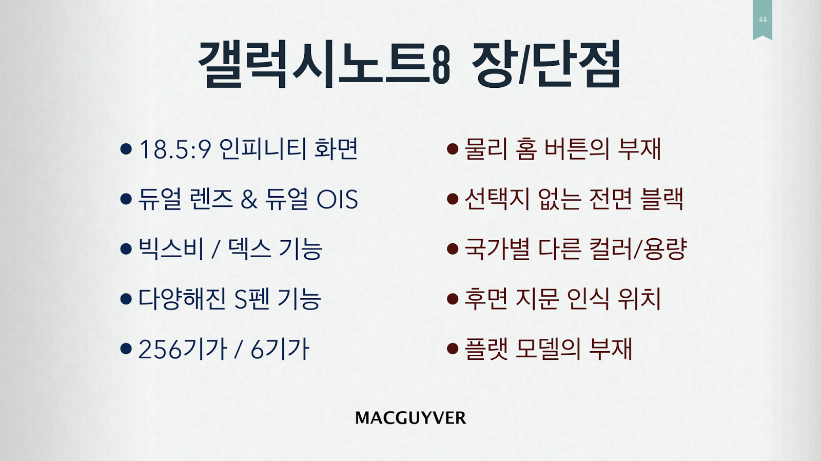 아직은 결말을 예측할 수 없는 스마트폰 시장에서 갤럭시노트8에 대한 평가는 오는 8월 말에 공개될 V30와 9월 중순에 공개될 아이폰8로 인해서 절정에 다다를 것으로 보인다. 과연 올가을 스마트폰 대전의 승자는 누가 될지 기대를 가지고 지켜봐야겠다. - MACGUYVER.