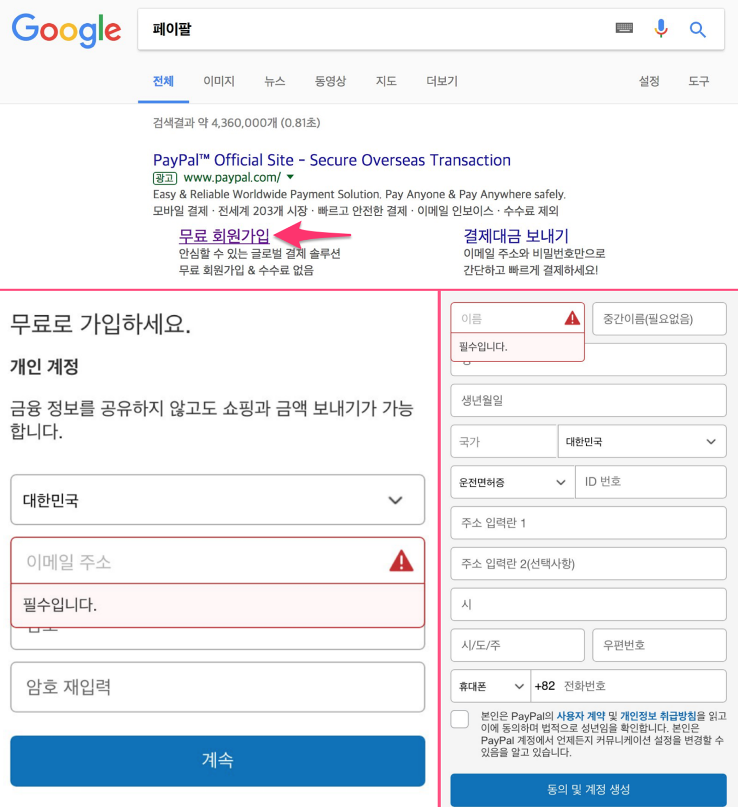페이팔에 가입하는 과정이나 카드 정보를 입력하는 과정이나 간편함의 측면에서 보자면 비슷하기 때문입니다. 입력해야 하는 사항들이 거의 유사하죠.