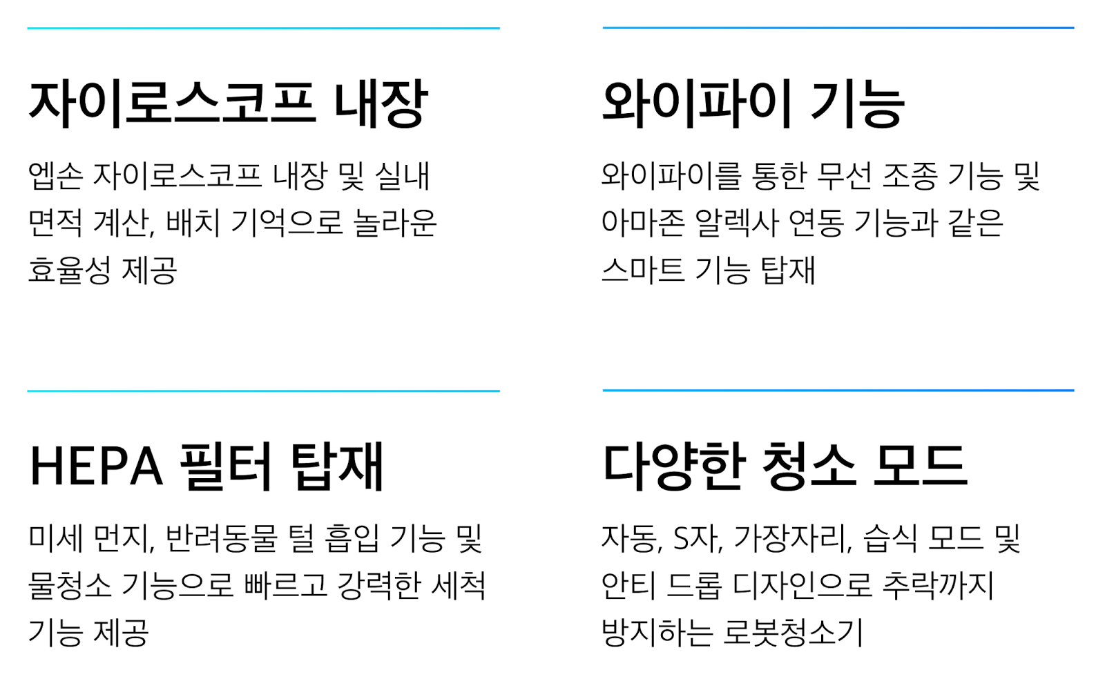 즉, 장애물이 있더라도 꼼꼼하게 빈틈없는 지능적인 청소를 해주는 것이죠. 이러한 기능을 가능하게 하는 고정밀 센서를 탑재하고 있기도 했는데요.