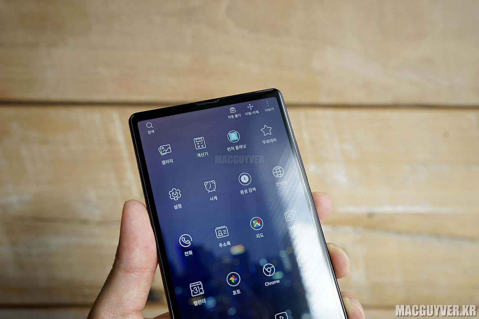 전면에서 90%를 화면이 덮고 있기 때문에 갤럭시노트8보다도 오히려 더 화면의 비율이 넓었습니다.