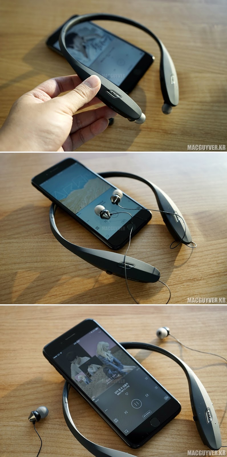넥밴드형 디자인의 최대 장점인 이어폰 자체의 가벼운 무게는 역시나 귀에 쏙 들어가는 크기의 초소형 블루투스 이어폰과 비교할 수 없는 편의성을 가져다주기도 했습니다.