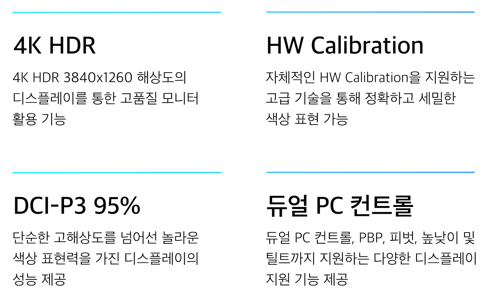 모니터의 가격이 100만원을 넘어간다는 것은 이미 그 자체로 프리미엄 제품군임을 뜻합니다.